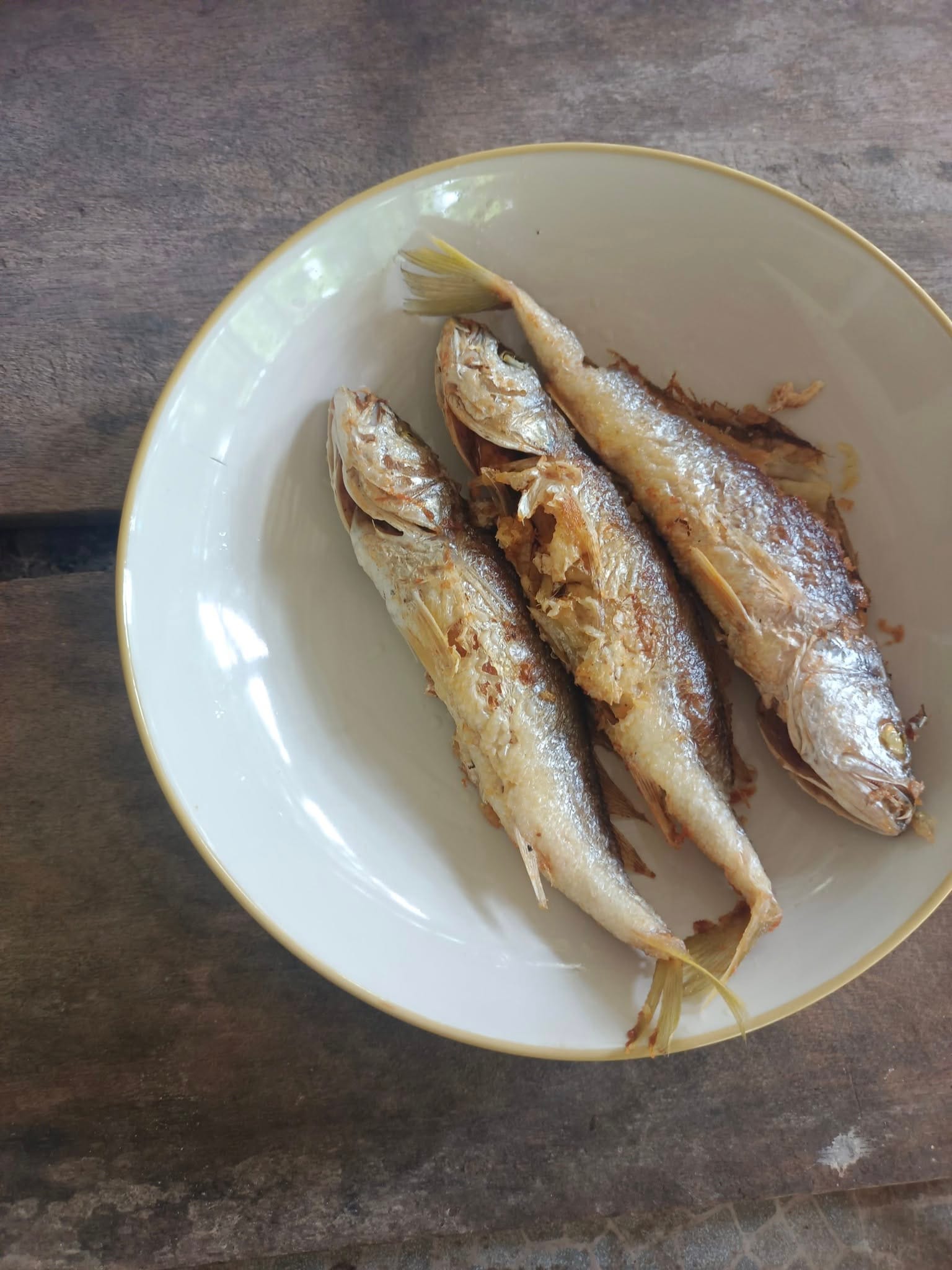 แกงสุกแล้วก็ทอดปลาสองซี่ทอดอับเกลือ ระหว่างรอสุก ก็ทำน้ำชุบหยำ เนื่องจากครัวน้องเป็นครัวยุคใหม่ ที่ซื้อเครื่องแกงสำเร็จ ไม่มีครกให้ตำน้ำพริก ผมจึงตัดสินใจทำ “น้ำชุบหยำ” (น้ำพริกที่ทำโดยการขยำ) แทน โดยใช้ส่วนผสมหลักและวัตถุดิบขึ้นชื่อจากชาวบ้านหัวเขา