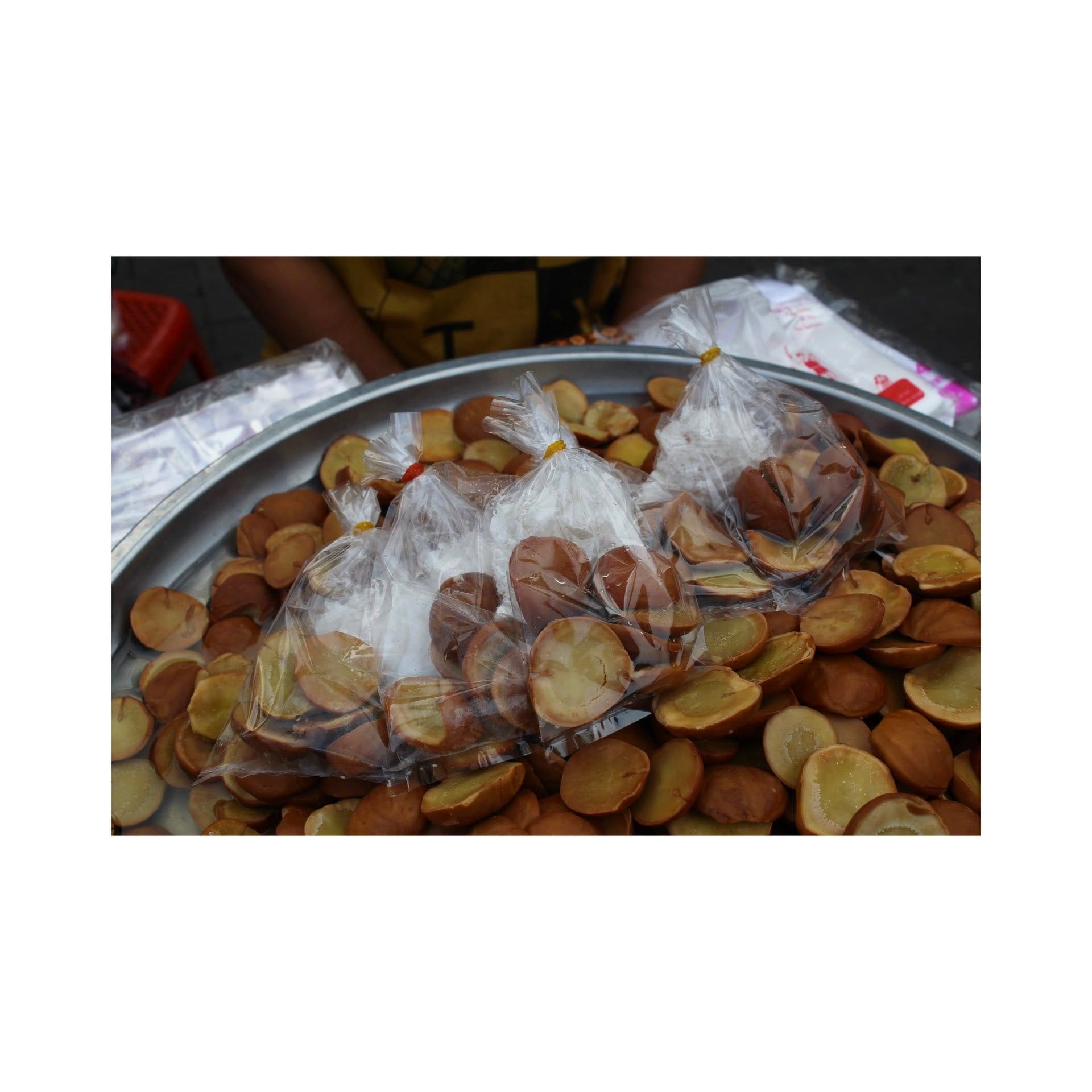 จนกระทั่งวันนี้ ณ บริเวณหน้าวัดพระมหาธาตุวรมหาวิหาร ได้พบกับคุณน้าสองท่านที่มาวางขายลูกเนียงต้มเมื่อสอบถามถึงความแตกต่าง คุณน้าได้เปิดเผยเคล็ดลับสำคัญว่า #ลูกเนียงที่นำมาขายนั้นได้ผ่านการ_ต้มอย่างยาวนานถึงเก้าชั่วโมง ซึ่งวิธีการนี้ถูกใช้เพื่อสลายกลิ่นฉุนให้หมดไป ด้วยความสงสัยระคนอยากพิสูจน์ จึงตัดสินใจอุดหนุนมาชิม และผลลัพธ์ที่ได้ก็สร้างความประหลาดใจอย่างยิ่ง ลูกเนียงต้มสูตรนี้ ไม่มีกลิ่นฉุนหลงเหลืออยู่เลย เนื้อสัมผัสของลูกเนียงมีความ มัน นุ่มนวล เมื่อเคี้ยวรวมกับมะพร้าวทึนทึก ที่ขูดฝอยและนำไปซาว กับเกลือเล็กน้อย และน้ำตาลทราย จนมีรสชาติ หวานนำ และ เค็มตาม