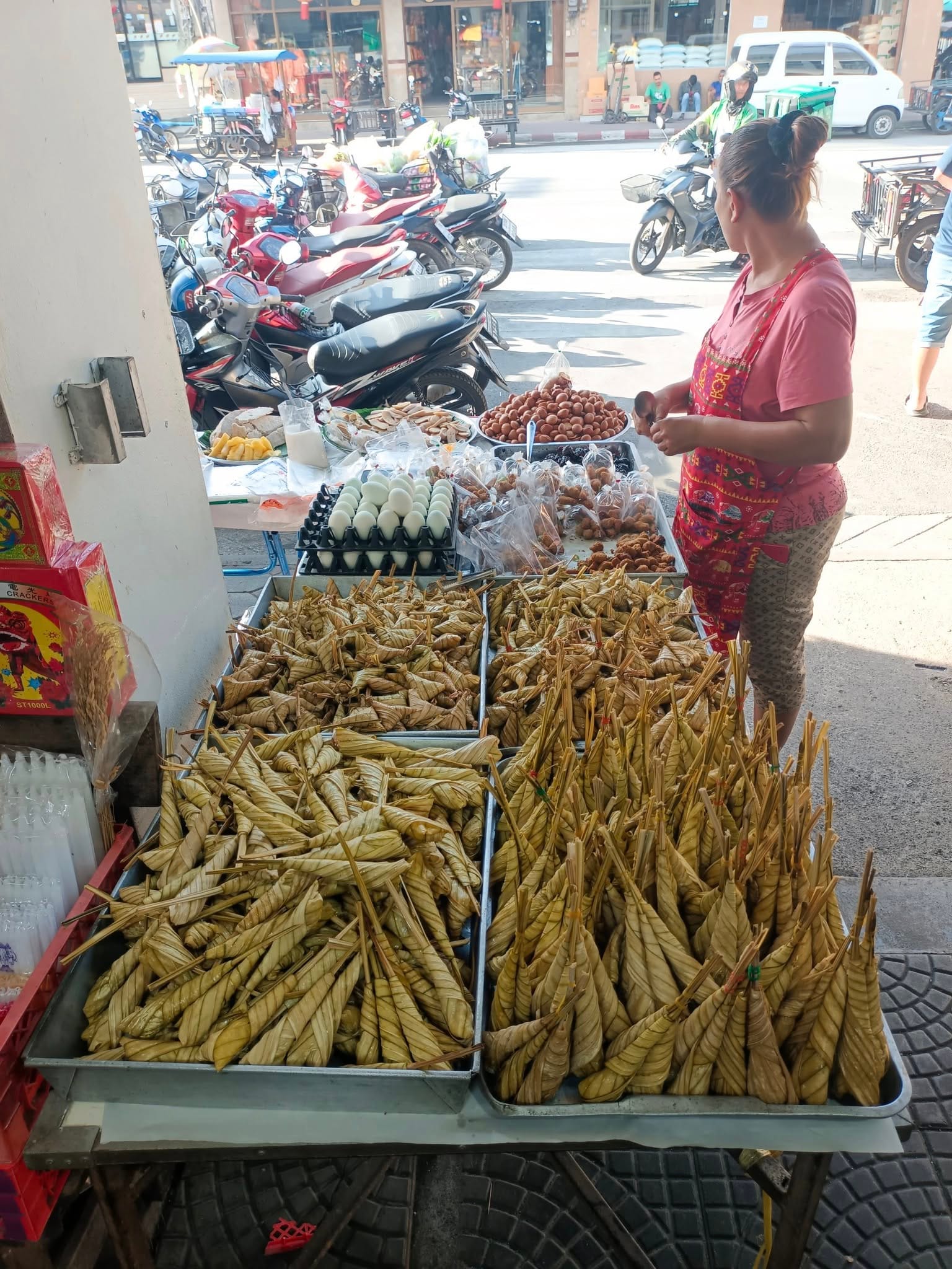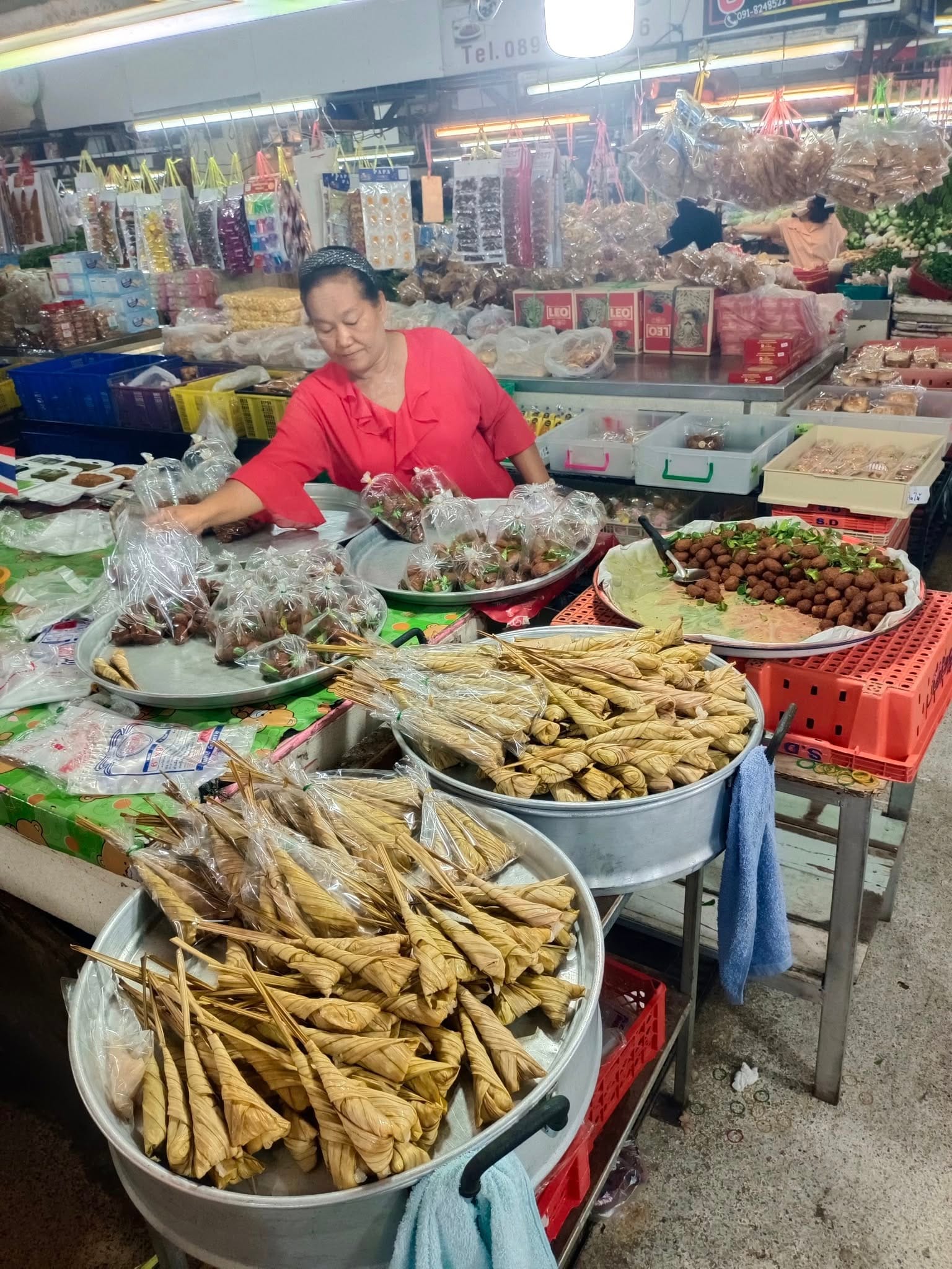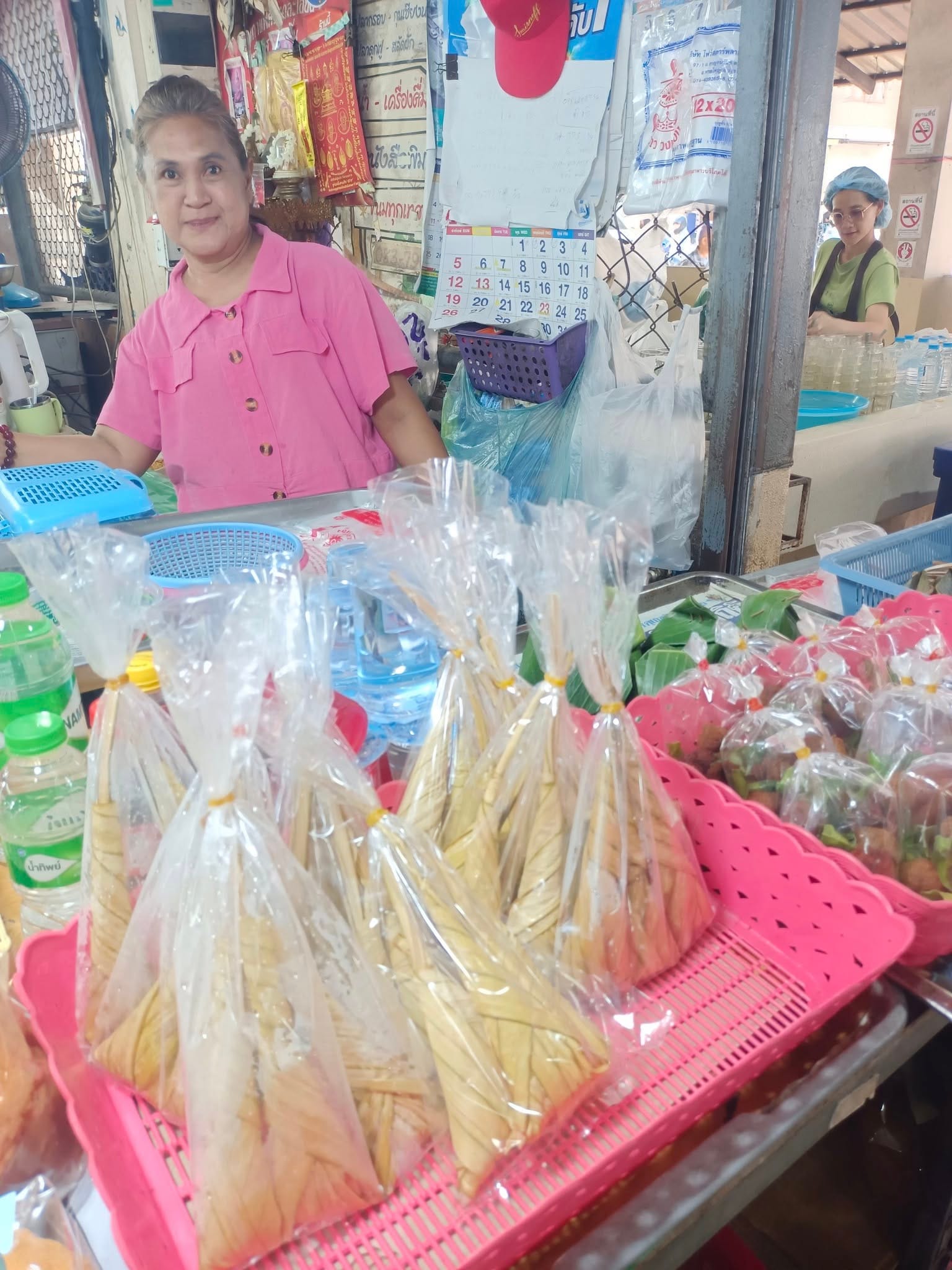 ผู้เขียนได้พบกับคุณป้าแม่ค้าขายต้มที่ห่อต้มได้อย่างสวยงามและประณีต ถักเปียทำเป็นช่ออย่างเรียบร้อย ท่านเผยว่า “วันนี้ได้มา 50 พวง ขายหมดแล้ว” เมื่อสองปีก่อนผู้เขียนเคยซื้อต้มของคุณป้าไปฝากญาติที่สงขลา ทุกคนต่างชื่นชมว่าห่อสวยและทรงแปลกตา เพราะที่สงขลานิยมห่อต้มแบบผูกปมลูกสั้น (แบบต้มแขก)