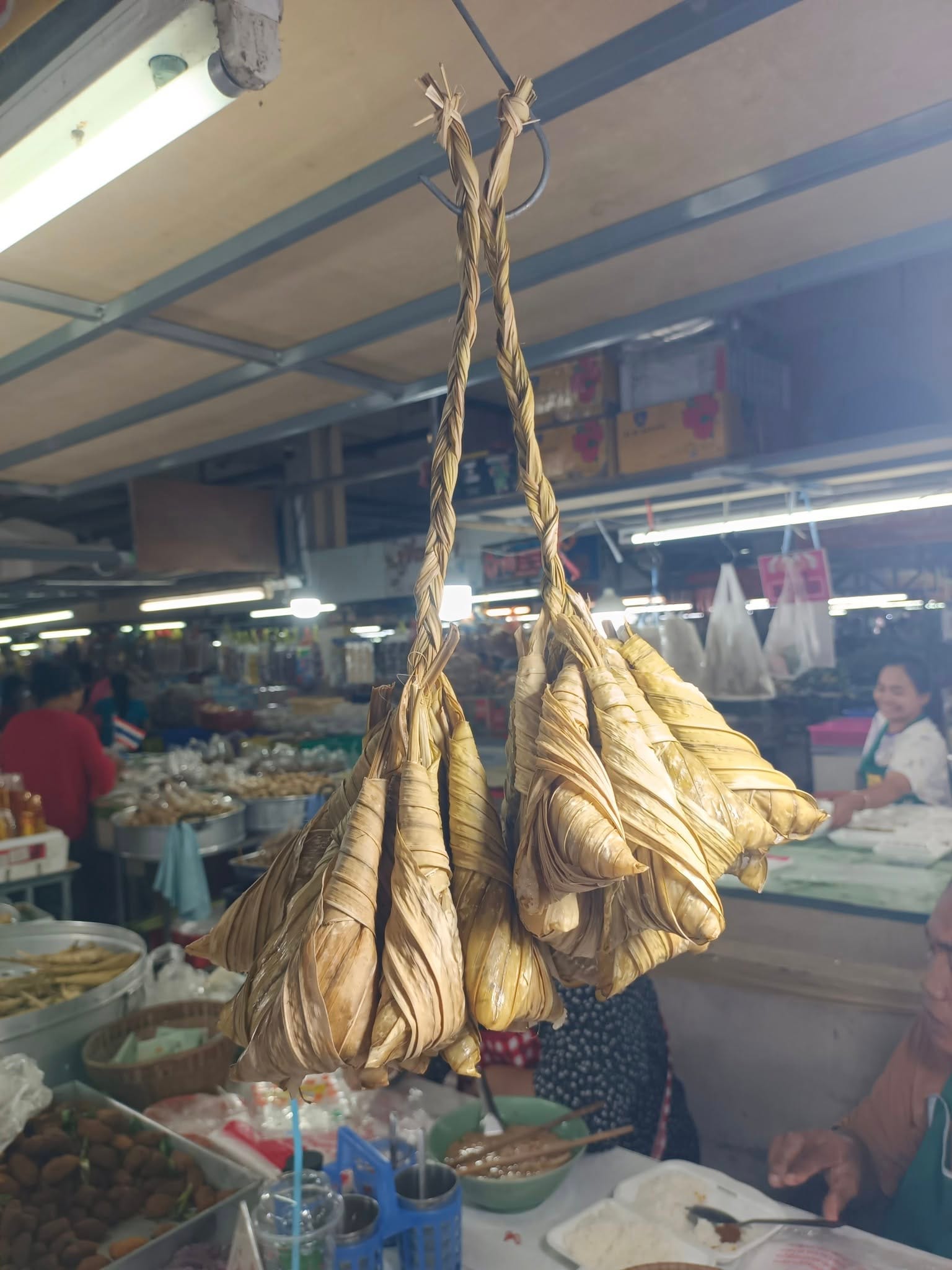 สีสันยามเช้าที่ตลาดคูขวาง เช้านี้ ณ ตลาดนัดคูขวาง ตลาดสดหลักของเมืองนครศรีธรรมราช คึกคักไปด้วยบรรดาแม่ค้าที่นำ ต้ม ออกมาวางจำหน่ายละลานตา ส่วนใหญ่เป็น #ต้มไทย แต่ก็มี #ต้มแขก ให้เห็นเช่นกัน สิ่งที่เพิ่มสีสันคือ บางร้านนำหางต้มมาสานเหมือนถักเปีย เพื่อให้สะดวกในการนำไปแขวนบนเรือพระ