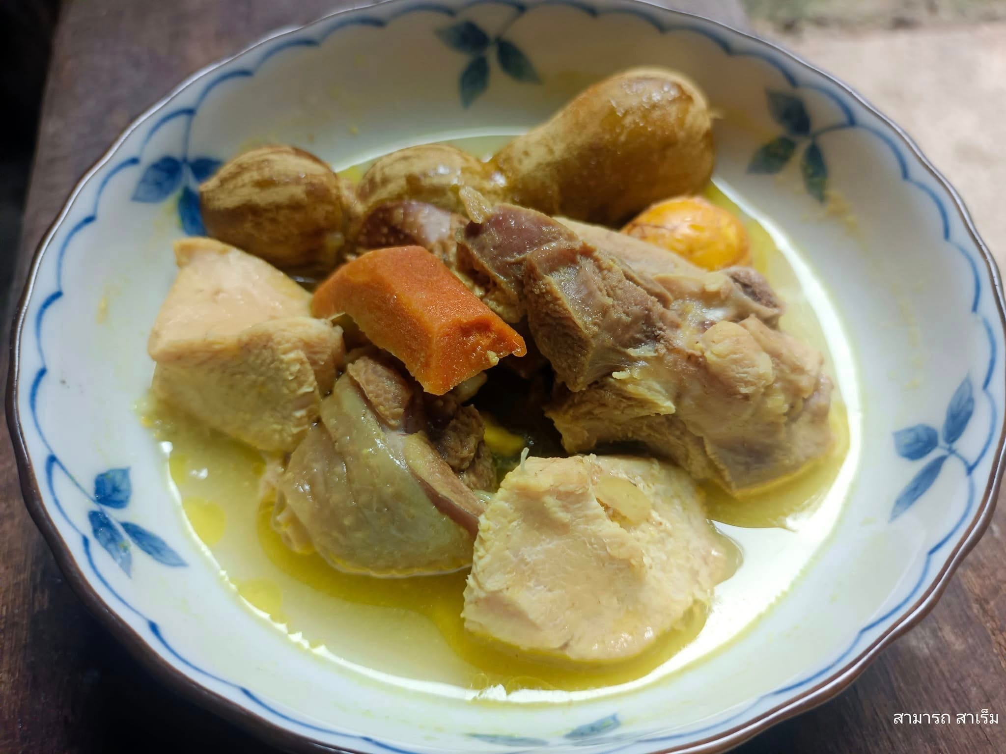 ส่วนหัวใจสำคัญของหม้อนี้คือ “ไก่บ้าน” กระบวนการนี้เริ่มต้นเมื่อ “ปะ” (พ่อ) ให้วะช่วย “แหละไก่” (คำเรียกการเชือดไก่ในภาษาถิ่นบ้านควน) ซึ่งต้องดำเนินไปตามหลักปฏิบัติของศาสนาอิสลามอย่างเคร่งครัด ผู้เชือดจะกล่าวพระนามของอัลเลาะห์ และหันหน้าไก่ไปยัง “ทิศกิบลัต” (ทิศที่ชาวมุสลิมหันหน้าไปยามละหมาด ซึ่งสำหรับประเทศไทยคือทิศตะวันตก) เมื่อเสร็จสิ้นจึงนำไปถอนขน และลนไฟซ้ำเพื่อให้ขนเล็กๆ หลุดออกจนหมด จากนั้นคือขั้นตอนการสับและล้างไก่ให้สะอาด ซึ่งต้องล้างอย่างน้อยสามน้ำ และในน้ำสุดท้ายจะต้องเป็นการล้างให้น้ำไหลผ่าน ก่อนจะนำไปตั้งให้สะเด็ดน้ำ