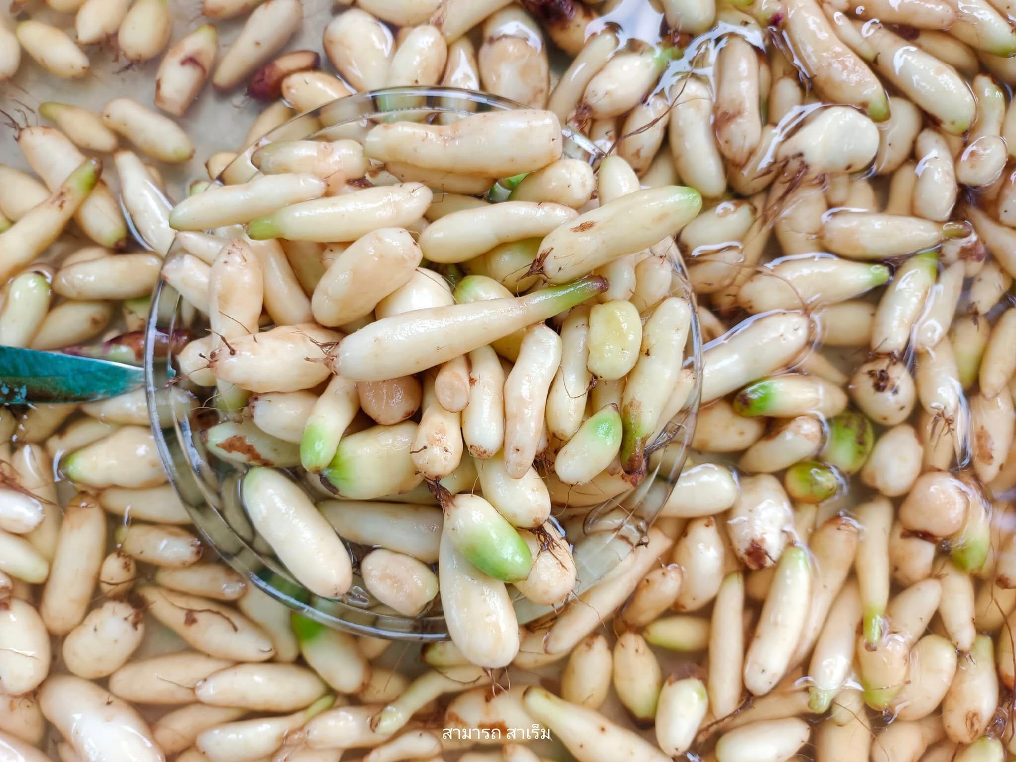 “อ๋อ… นี่เขาเรียก ‘ดุกเลหัวพาน'” เธอตอบ ผมนึกเดาในใจ คำว่า “พาน” ในที่นี้ คงเป็นการเปรียบเปรยลักษณะหัวปลาที่ใหญ่และแบนกว้าง คล้ายกับพานที่ใช้ในพิธีการก็เป็นได้ วันนี้ผมอุดหนุนปลาดุกเลหัวพานมาสองตัว (100 บาท) และเดินเลยไปอีกนิดก็ได้ “หัวมันขี้หนู” จากแผงของคุณยายอีก 20 บาท คุณยายเล่าด้วยรอยยิ้มว่า หัวมันนี้เป็นของน้องสาวที่ไปแต่งงานกับคนสุราษฎร์ธานี บ้านอยู่ในเขตภูเขา เขาปลูกส่งมาให้คุณยายขายที่นครฯ ทุกปี