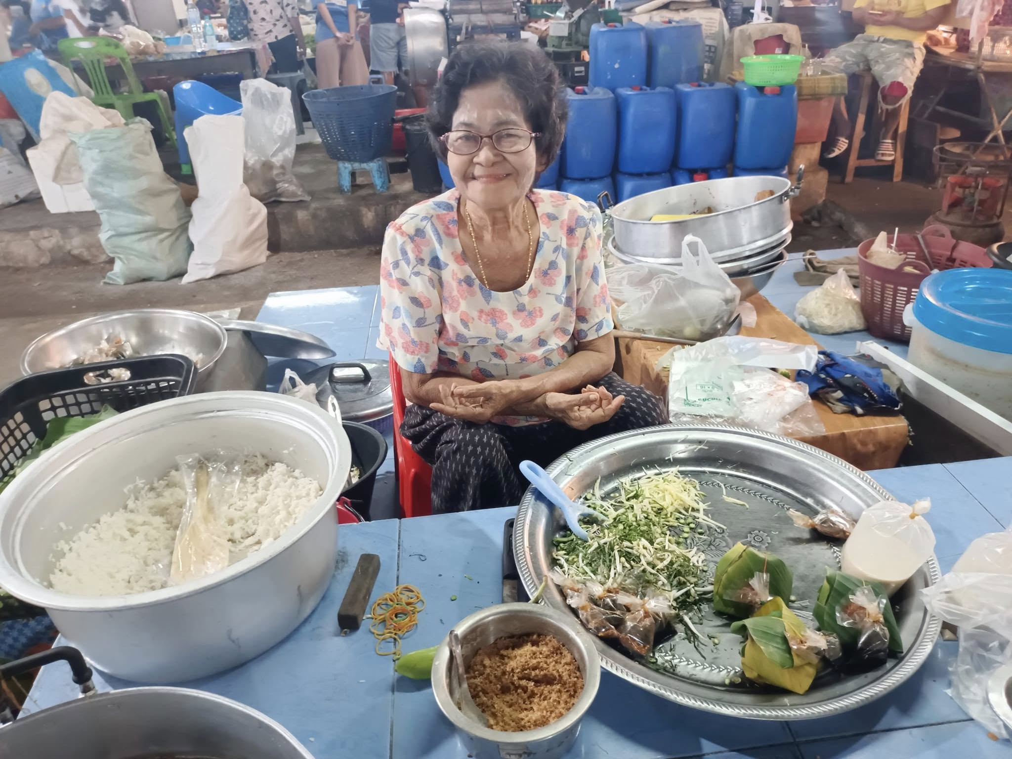 คุณยายเจ้าของร้านข้าวยำเคยน้ำที่ตลาดเช้าควนเนียง ถ่ายเมื่อวันที่ 24 พฤษภาคม 2568