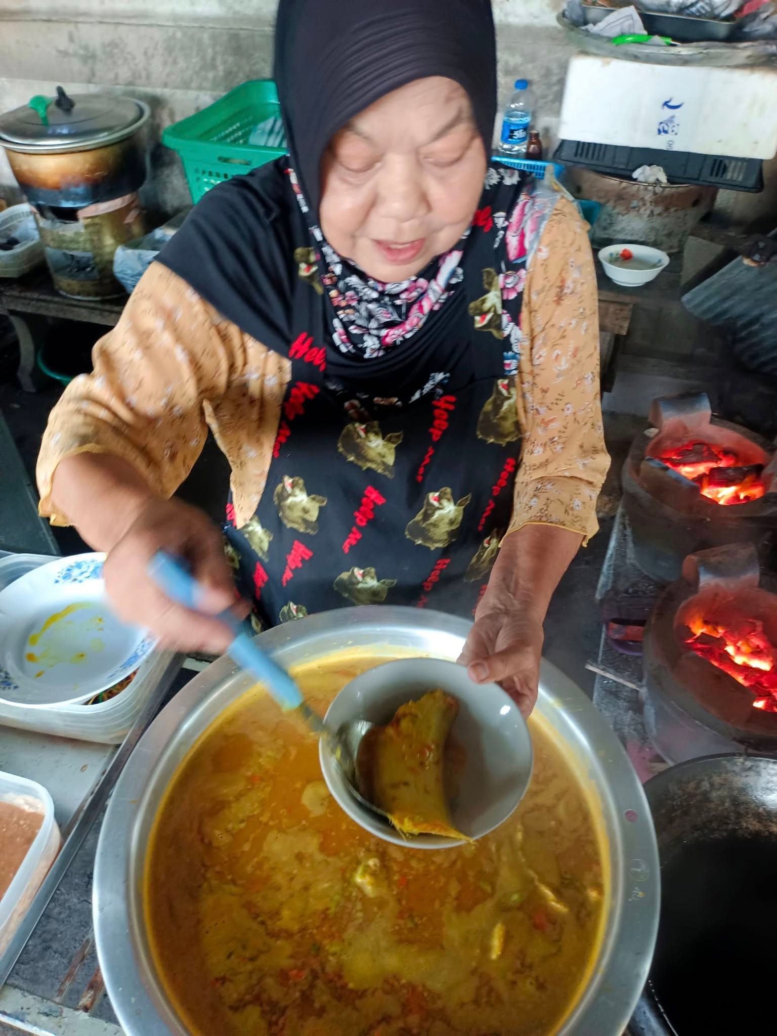 “วะ” คุณป้าเจ้าของสูตรแกงส้ม โรยพริกสดเพิ่มความหอมและรสร้อนแรงให้กับน้ำแกงส้มก่อนยกหม้อออกจากเตา ภาพชุดนี้คือแกงส้มปลายอดม่วงแห้ง หรือที่พี่น้่องคนไทยเรียกว่า ปลาลิ้นหมา ผู้เขียนบันทึกภาพๆไว้เมื่อวันที่ 20 มกราคม 2568 https://www.facebook.com/share/p/1CYojH4S7x/