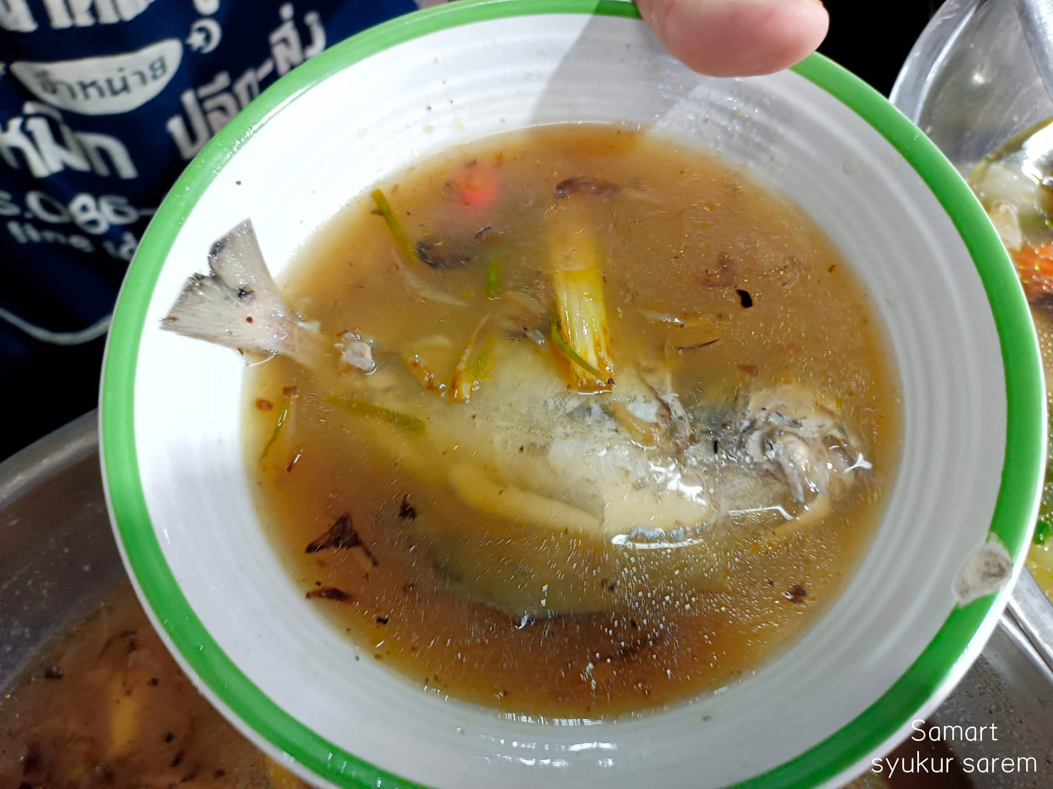 “…ทำกินกันในเรือ อาหารง่าย ๆ มีอะไรก็ใส่ ๆ กะปิ กระเทียม หัวหอม พริก ตะไคร้ ทุบ ๆ เจียวกับน้ำมันแล้วใส่น้ำ… ปลาที่ใช้เช่น ปลากะพง ปลากุเรา หรือปลาเก๋าได้หมด… ก๊ะได้สูตรมาจากแม่ยายที่เป็นคนบ้านแหลม ท่าศาลานี่แหละ…”