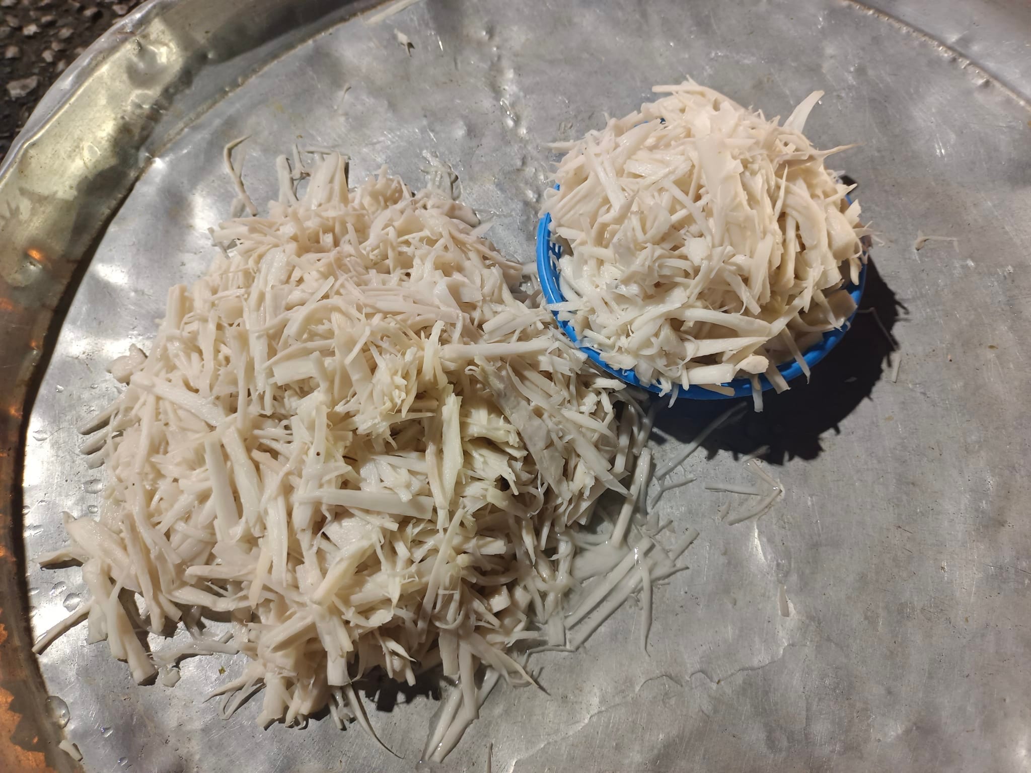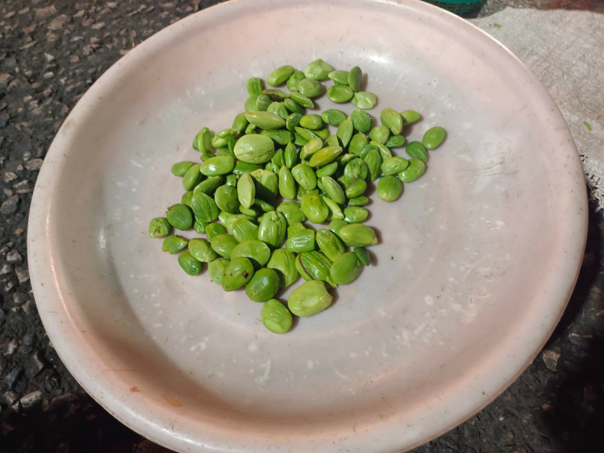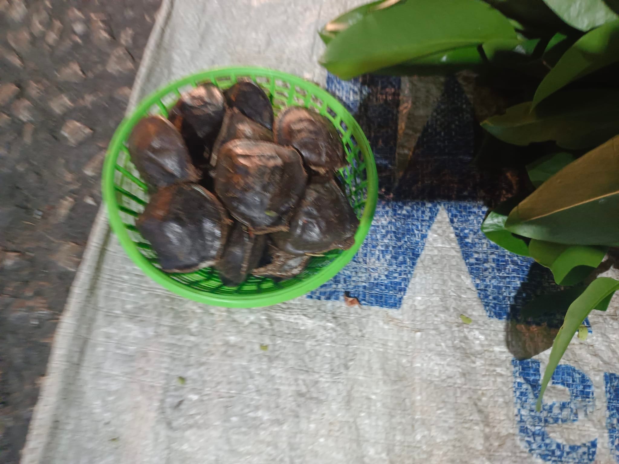 ท่ามกลางความพลุกพล่านและแผงค้ามากมาย สายตาของเราก็สะดุดเข้ากับร้านเล็ก ๆ ของ “มะแก่” (ยาย) ท่านหนึ่งที่ตั้งร้านแบบ “แบกะดิน” สินค้าที่วางขายคือพืชผักพื้นบ้านไม่กี่ชนิด ทั้ง #หน่อไม้ #ลูกตอ #ใบส้มมวง(ชะมวง) #ลูกเนียง และ #ลูกกรูด ที่เหลือไม่มากนัก เราไม่พลาดที่จะแวะเข้าไปพูดคุยและขอถ่ายรูปท่านไว้เป็นที่ระลึก