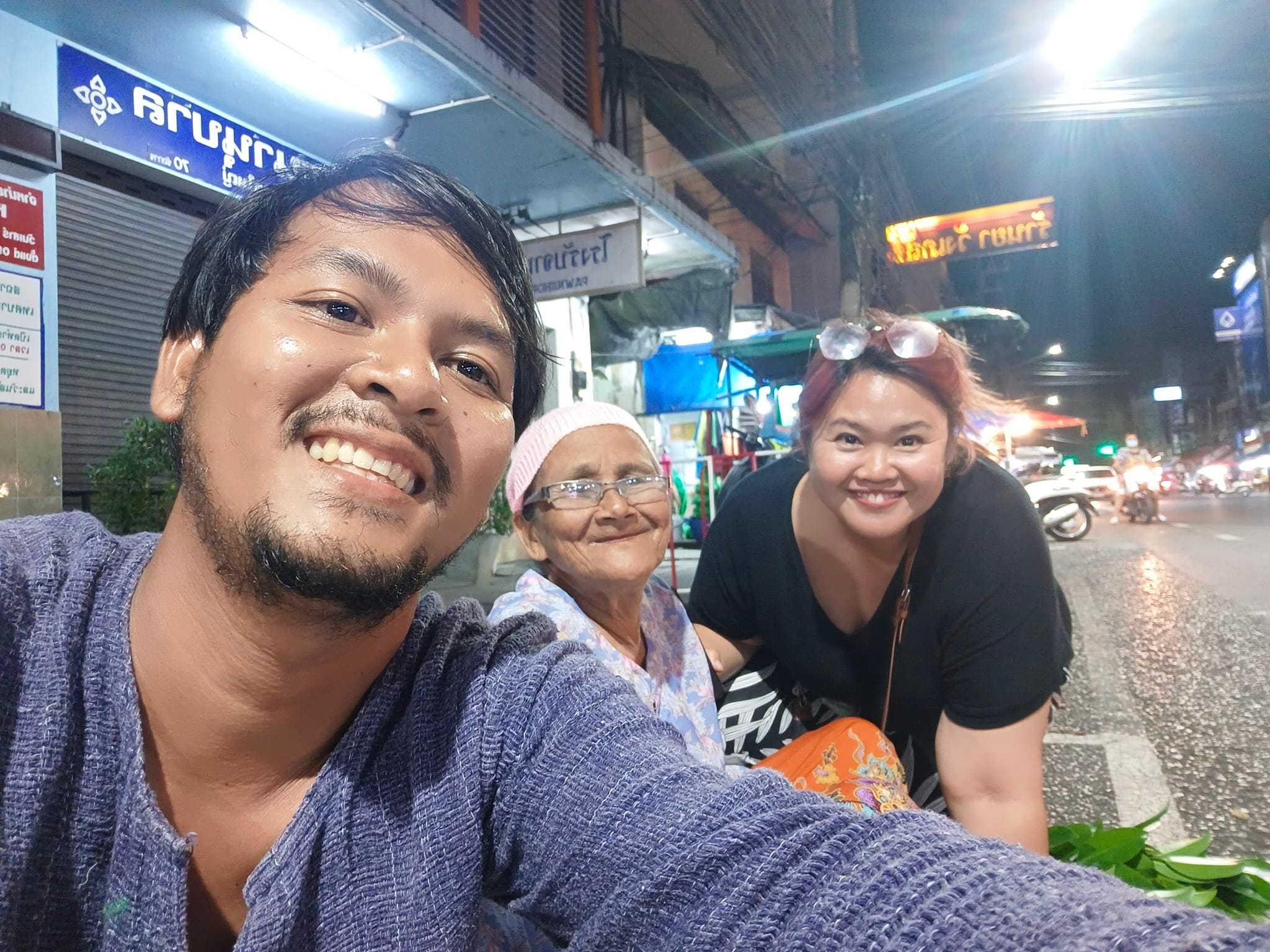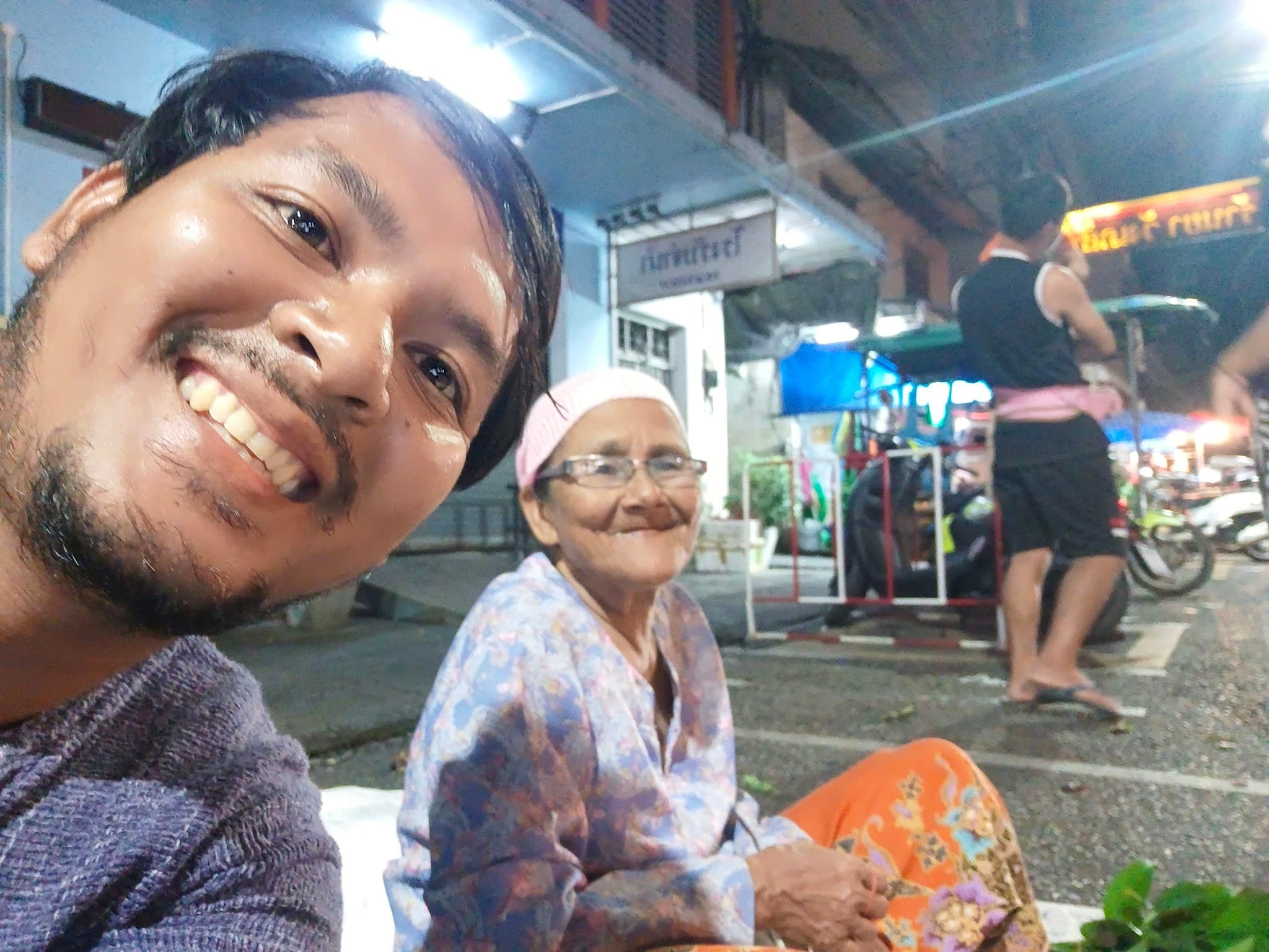 “มะแก่ย๊ะ” เล่าว่า ท่านมาขายผักที่ตลาดนี้ทุกวัน โดยมาพร้อมกับหลานซึ่งเปิดร้านขายน้ำชาอยู่ไม่ไกลกัน ท่านจะเริ่มขายตั้งแต่หัวค่ำไปจนถึงเที่ยงคืนแล้วจึงกลับบ้านพร้อมหลาน ๆ “ชอบอาชีพค้าขายมาก ทำมาตั้งเเต่สาว ๆ อายุ ๑๕ ปีก็ขายของแล้ว” มะแก่ย๊ะเล่าด้วยแววตาเปี่ยมประสบการณ์