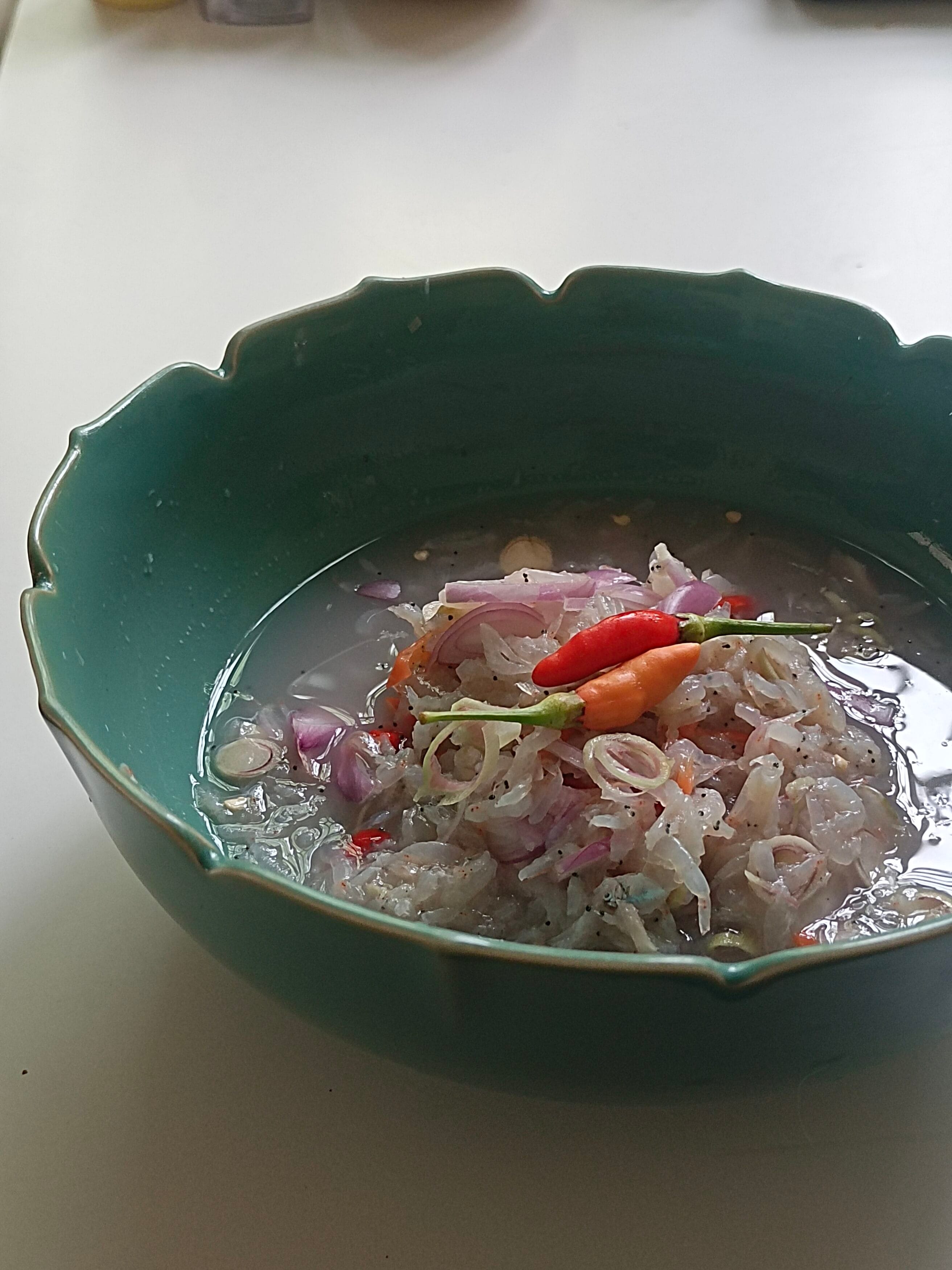 นอกจากจะเป็นวัตถุดิบชั้นดีสำหรับทำกะปิแล้ว คุณน้ายังได้แนะนำ สูตรอาหารพื้นบ้าน ที่เป็นของแถมให้กับลูกค้า ซึ่งคุณน้าบอกว่าเป็นเมนูที่ทำง่ายและอร่อยมาก นั่นคือ