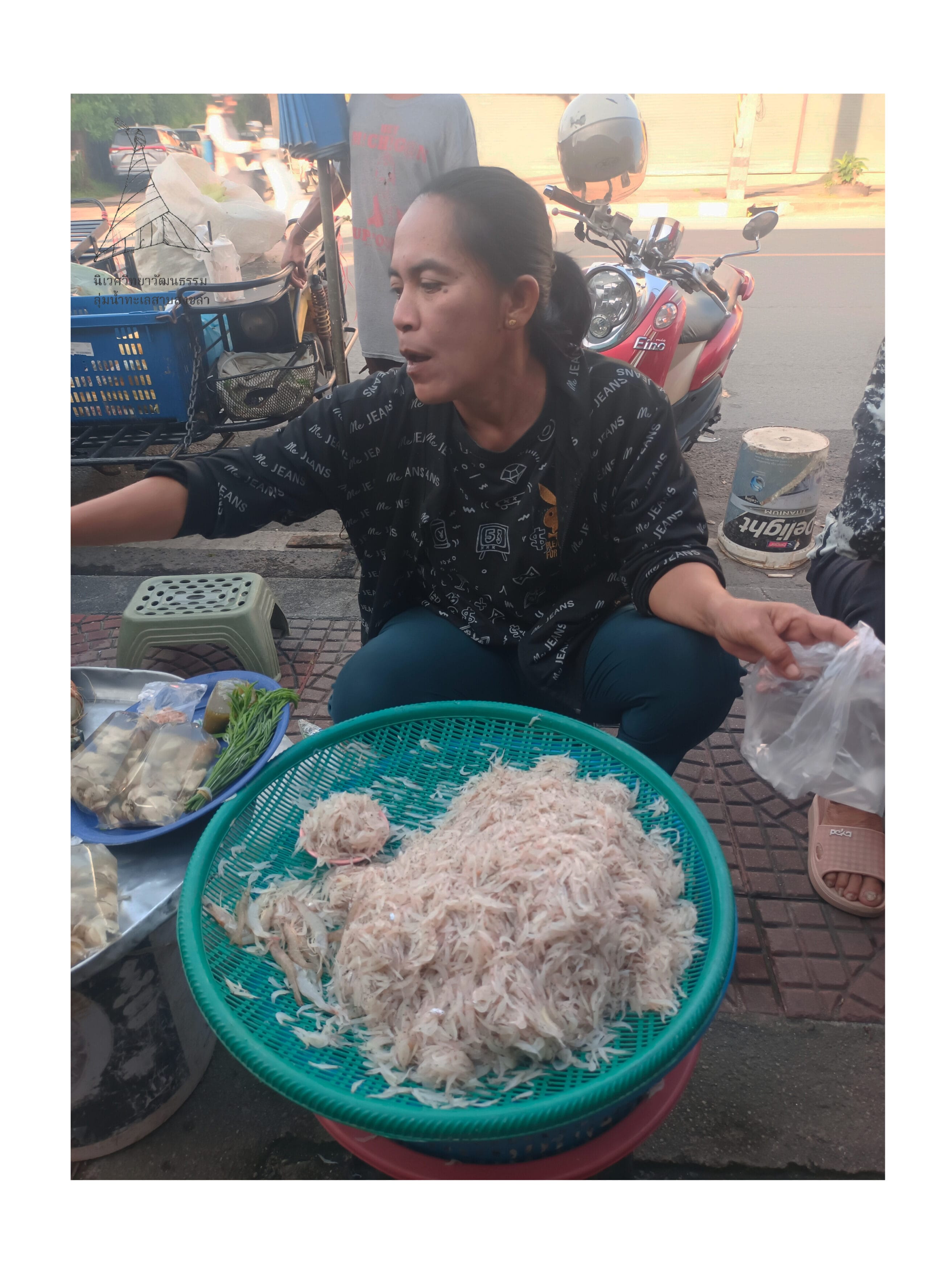 ความน่าประทับใจของเรื่องนี้ไม่ได้อยู่แค่รสชาติของอาหาร แต่ยังรวมถึงเรื่องราวของ วัตถุดิบพื้นถิ่นตามฤดูกาลจากทะเลอ่าวไทย ที่จับโดยชาวประมงในอำเภอท่าศาลา และส่งตรงถึงมือผู้บริโภคโดยเจ้าของที่เป็นชาวประมงเอง ซึ่งพร้อมจะถ่ายทอดภูมิปัญญาและสูตรอาหารท้องถิ่นให้เป็นของแถม ลูกค้าอีกท่านที่มายืนดูตอนแรกไม่ทราบว่าจะซื้อไปทำอะไร พอได้ฟังสูตรอาหารและเรื่องราวเหล่านี้ จึงตัดสินใจอุดหนุนตามไปด้วย