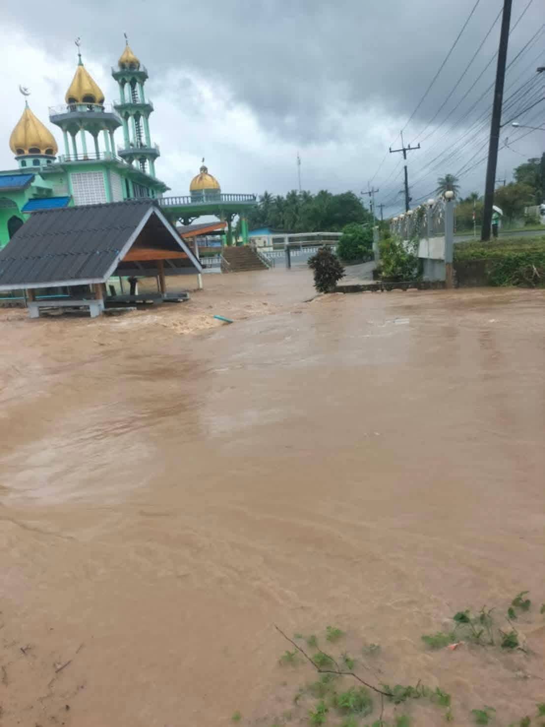 มวลน้ำมหาศาลไหลบ่าเข้าท่วมหมู่บ้าน โดยเฉพาะบริเวณมัสยิดบ้านคลองกั่วและพื้นที่ตลอดแนวคลอง(คลองกั่ว) ซึ่งเป็นต้นน้ำสายสำคัญของคลองภูมีก่อนจะไหลลงสู่ทะเลสาบสงขลาตอนล่างที่บ้านปากบางภูมี อำเภอควนเนียง จังหวัดสงขลา