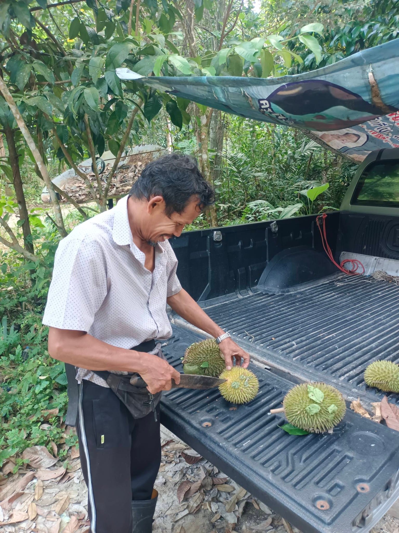 ก่อนจากลา เราเดินสำรวจสวนทุเรียนบ้านที่มีชื่อเรียกตามลักษณะเด่นอย่าง “ขี้มิ้นทอง” (เนื้อเหลืองเหมือนขมิ้น) หรือชื่อที่สะท้อนการมีลูกดกลูกเยอะอย่าง “เศรษฐี” และ “ผ้าร้ายห่อทอง” พร้อมกับได้รับเมล็ดพันธุ์พริกขี้หนูติดมือกลับมา การมาเยือนคลองลำแซงครั้งนี้จึงไม่ใช่เพียงการมาหาปราชญ์ชาวบ้าน แต่คือการทำความเข้าใจว่า คนที่อยู่บนภูเขาสูงเหล่านี้ แท้จริงแล้วคือคนลุ่มน้ำอู่ตะเภาที่พกพาวัฒนธรรมและความรักในถิ่นฐานขึ้นมาดูแลป่าต้นน้ำ เพื่อให้สายน้ำยังคงไหลไปเลี้ยงพี่น้องของพวกเขาที่ปลายน้ำสืบต่อไป