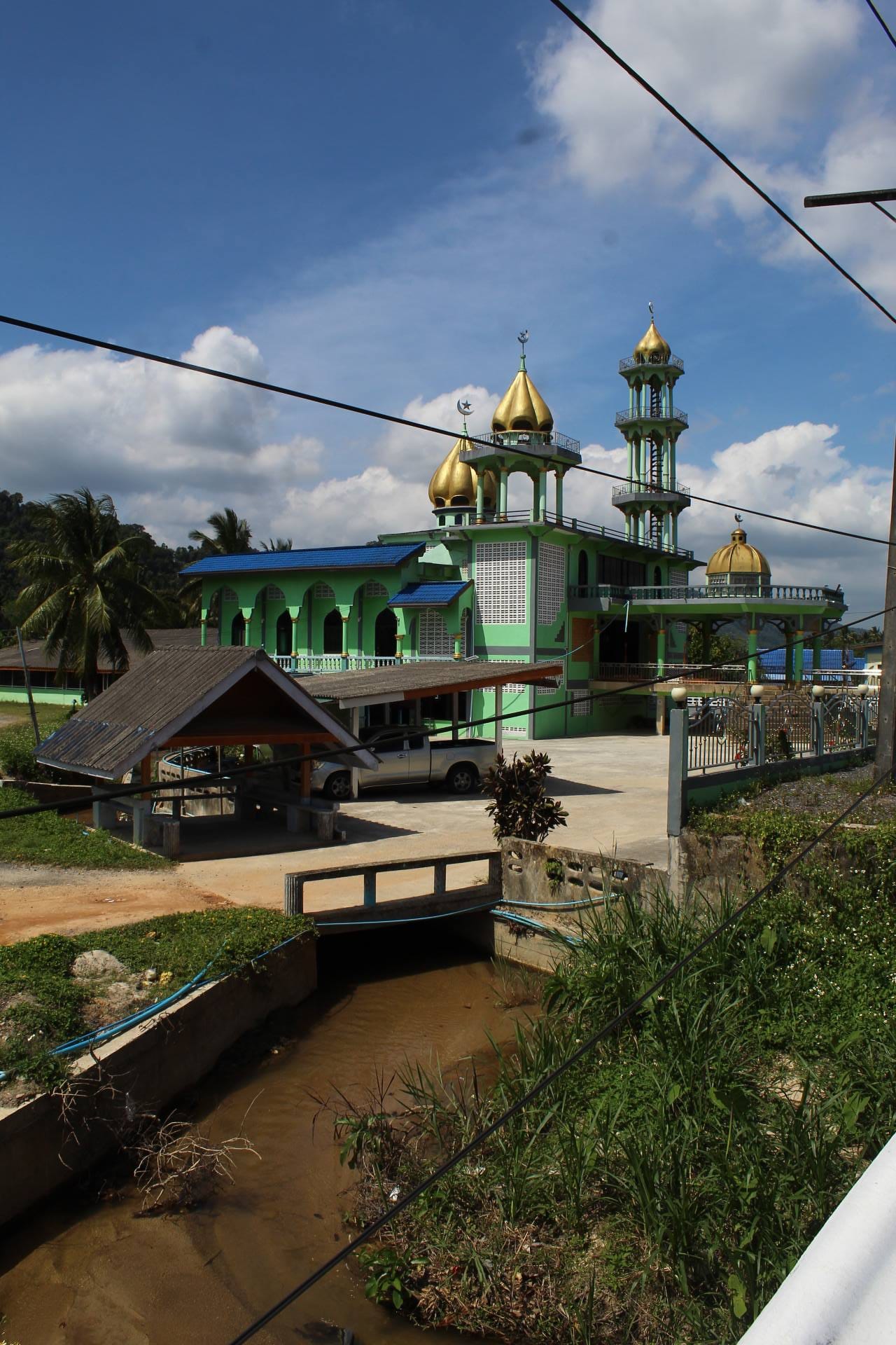 มัสยิดโดมสีทองอร่ามที่มีรูปทรงคล้ายกลีบมะเฟือง ละม้ายคล้ายคลึงกับมัสยิดกลางจังหวัดสตูล ตั้งตระหง่านเป็นสง่าอยู่ริมถนนยนตการกำธร เส้นทางสายหลักที่เชื่อมระหว่างสตูลและสงขลา คือที่ตั้งของมัสยิดบ้านคลองกั่ว มัสยิดแห่งนี้ไม่เพียงแต่ตั้งอยู่ริมถนนสำคัญ หากแต่ยังเคียงคู่กับ คลองกั่ว สายน้ำใสที่ไหลรินจากต้นน้ำ ก่อนจะไปรวมกับคลองภูมีและไหลลงสู่ทะเลสาบสงขลาตอนล่างในที่สุด