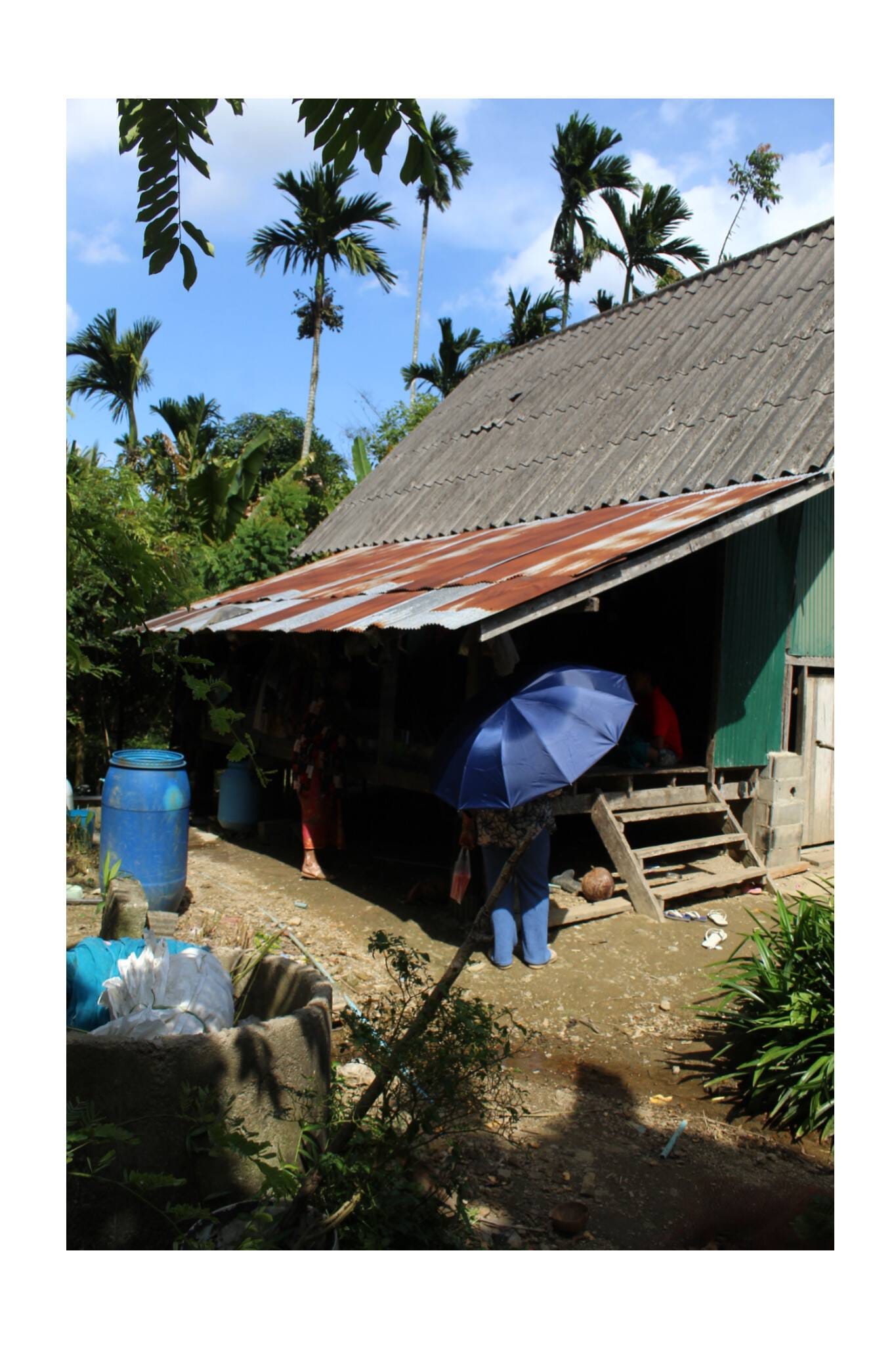 แม้พื้นที่แถบนี้จะเผชิญกับสภาวะน้ำล้นตลิ่งจากคลองกั่วเป็นประจำทุกปี แต่ในปีนี้ปริมาณน้ำกลับสูงเป็นประวัติการณ์และท่วมขังยาวนานหลายวัน ร่องรอยของทรายที่สายน้ำพัดพามายังคงปรากฏให้เห็น เช่นเดียวกับผืนดินที่ยังคงเป็นหลุมเป็นบ่อจากแรงกัดเซาะ…ในการมาเยือนครั้งนี้ ผมได้นั่งพูดคุยกับ โต๊ะดารอ น้องสาวของคุณปู่ คำว่า “โต๊ะดา” นั้นสะท้อนถึงวัฒนธรรมการเรียกขานตามลำดับการเกิดในวิถีมลายู ซึ่งมีความน่าสนใจยิ่ง โดยปกติแล้ว