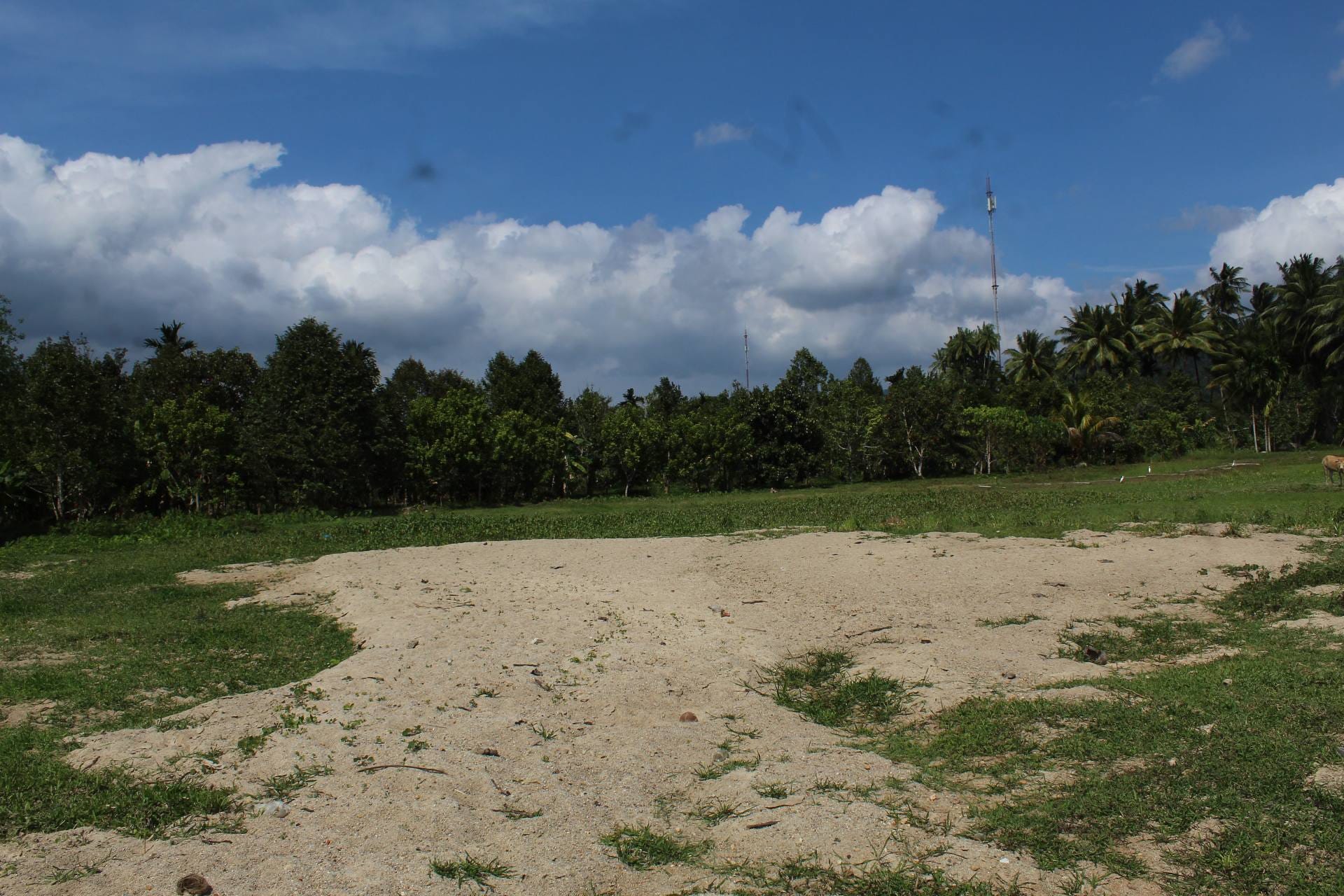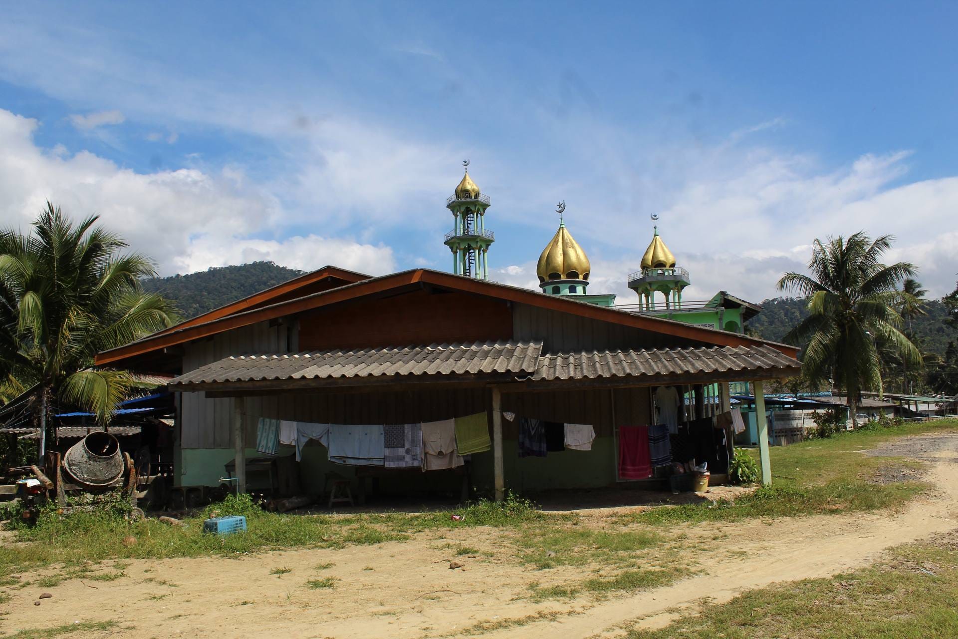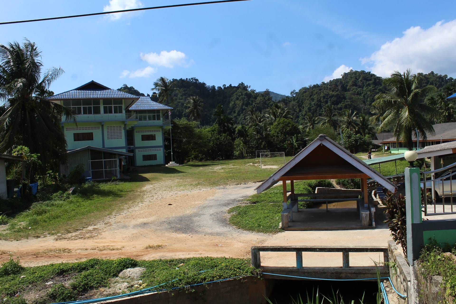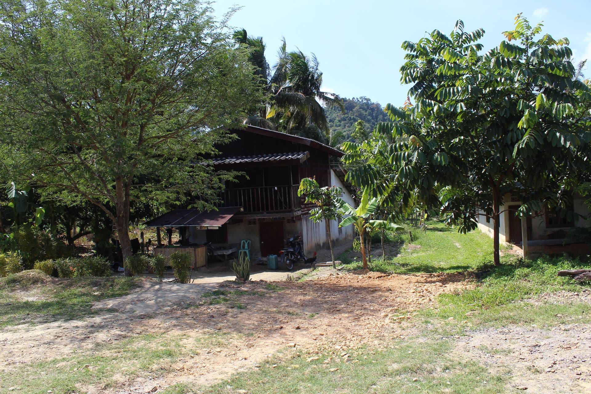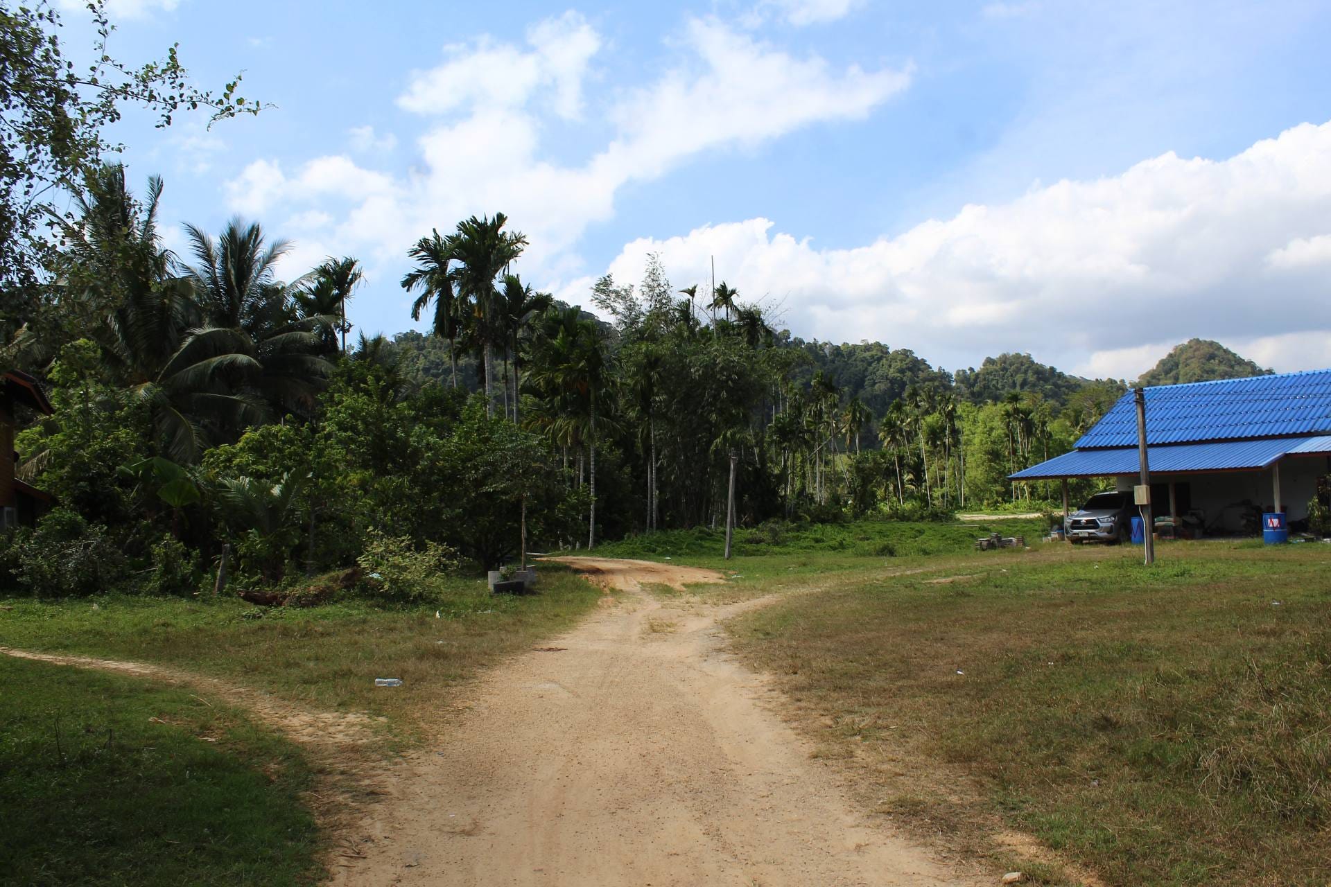 ถัดไปทางด้านหลังคือทัศนียภาพของบ้านเรือนและทุ่งนาบนที่ราบเชิงเขา โดยมีเทือกเขาบรรทัดพาดผ่านเป็นฉากหลังอันยิ่งใหญ่ บริเวณนี้คือที่ตั้งบ้านเรือนของเหล่าพี่น้องของ โต๊ะบัน หรือ ปะแก่ (คุณปู่) ของผู้เขียน ซึ่งในวันนี้ผมมีโอกาสได้เดินทางไปเยี่ยมเยียนเพื่อถามไถ่สารทุกข์สุกดิบ หลังผ่านพ้นเหตุการณ์มหาภัยพิบัติน้ำท่วมและฝนตกหนักเมื่อปลายเดือนพฤศจิกายน 2568 ที่ผ่านมา