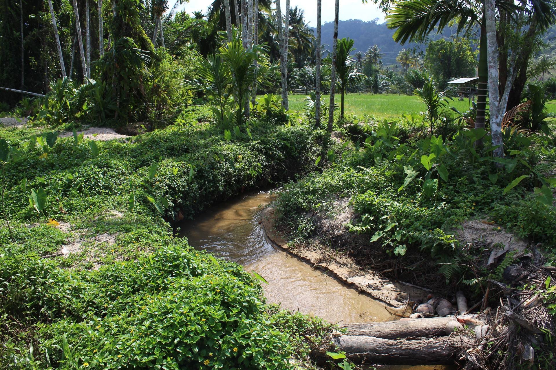 หากนาขั้นบันไดทางภาคเหนือคือการลดหลั่นตามไหล่เขาเพื่อรักษาหน้าดินและกักเก็บน้ำ นาที่บ้านคลองกั่วแห่งนี้ก็มีอัตลักษณ์ที่น่าสนใจไม่แพ้กัน แม้จะเป็นที่ลุ่มเชิงเขาแต่ชาวบ้านได้รังสรรค์ระบบการทำนาแบบ ลดหลั่น โดยอาศัยหลักการทางธรรมชาติ…ความโดดเด่นของนาที่นี่คือ “นาริมคลอง” จะถูกจัดวางให้อยู่ในระดับที่สูงที่สุด ก่อนจะค่อยๆ ไล่ระดับต่ำลงไปตามสภาพพื้นที่ เหตุผลสำคัญไม่ใช่เพื่อความสวยงามเพียงอย่างเดียว แต่คือ การระบายน้ำ ที่ชาญฉลาด น้ำจากลำคลองจะถูกผันเข้าสู่เหมืองระบายน้ำ เพื่อส่งต่อไปยังผืนนาที่อยู่ถัดลงไปเป็นทอดๆ การวางระบบเช่นนี้ทำให้น้ำไหลเวียนเข้าสู่ทุกแปลงนาได้อย่างทั่วถึงโดยอาศัยแรงโน้มถ่วง…