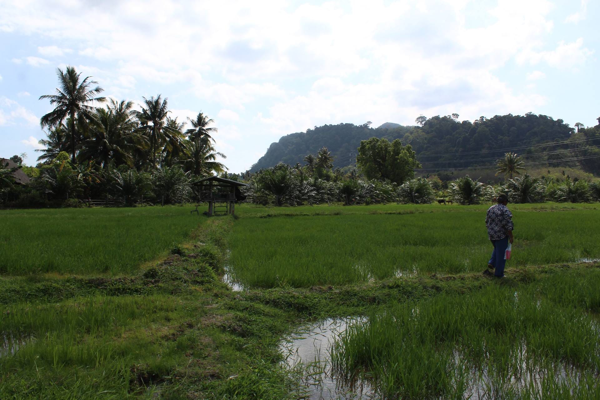 ที่นี่ไม่ใช่ภาคเหนือ แต่เป็นพื้นที่ลุ่มเชิงเขาบรรทัด จ.สงขลา แม้ภูมิประเทศจะเปลี่ยนไป แต่สิ่งที่ปรากฏตรงหน้ากลับปลุกความทรงจำเรื่องนาขั้นบันไดขึ้นมาอย่างแจ่มชัด