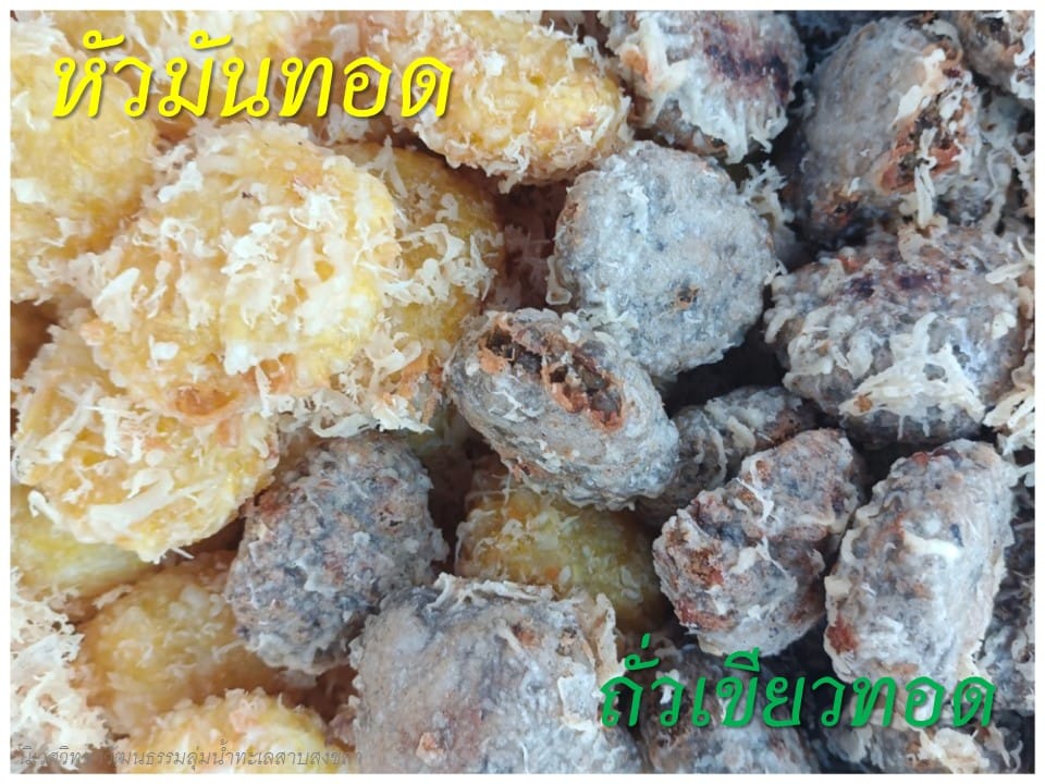 ที่ร้านของวะยังมีขนมทอดอีกสองอย่างคือ #ขนมหัวมันทอด ทำจากหัวมันเทศ (มันสำปะหลัง) นำมาขูดเป็นเส้นผัดกับน้ำตาลปั้นเป็นลูกกลมแบน ชุบแป้งนำไปทอด กับ #ขนมถั่วเขียวทอด นำถั่วเขียวที่ต้มจนเปื่อยผัดกับน้ำตาลปั้นเป็นลูกกลมแบนชุบแป้งแล้วทอดเช่นกัน