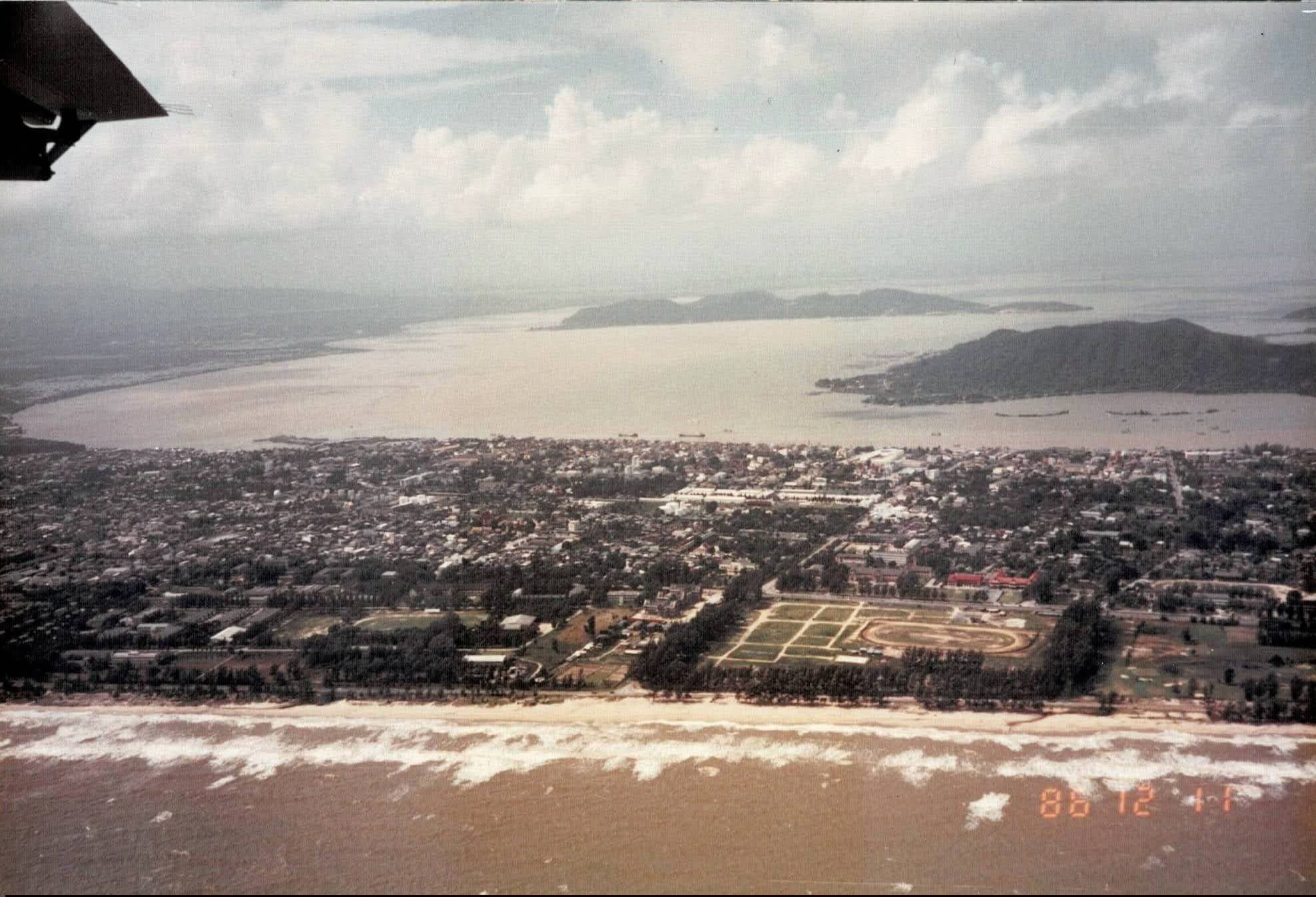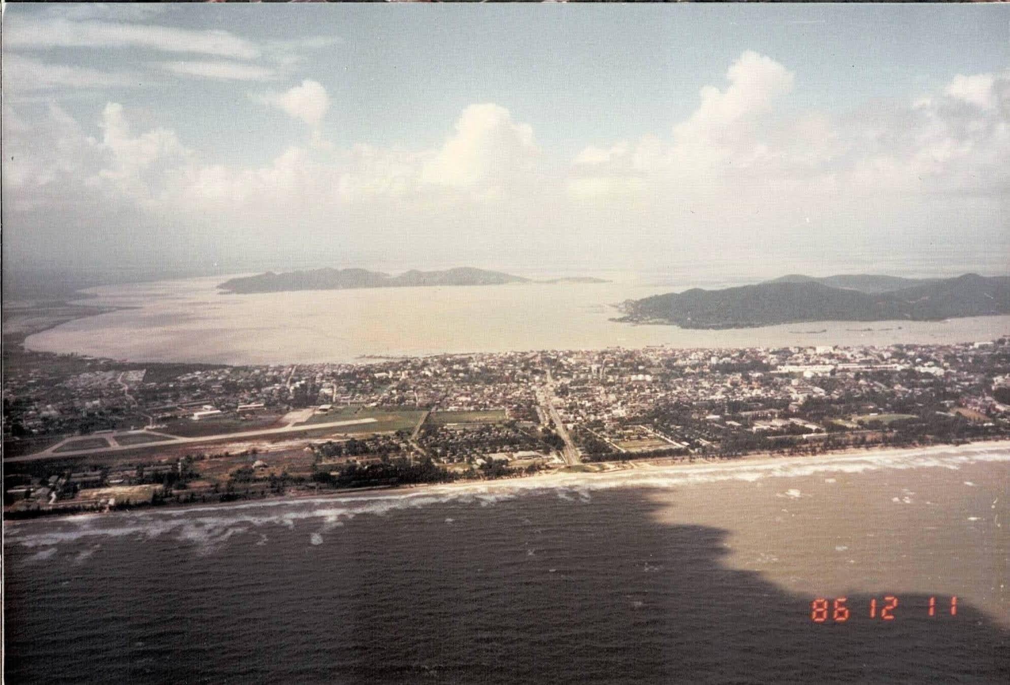 “…ภาพทางอากาศ “ชุดที่ ๑ – เมืองสงขลาขณะท่าเรือน้ำลึกกำลังก่อสร้าง” ผมเป็นผู้ถ่ายเองเมื่อวันที่ ๑๑ ธันวาคม ๒๕๒๙ โดยความอนุเคราะห์ของกองบิน ๕๖ หาดใหญ่ เพื่อวัตถุประสงค์ในการศึกษาส่วนหนึ่งของแผนพัฒนาการท่องเที่ยวจังหวัดสงขลา