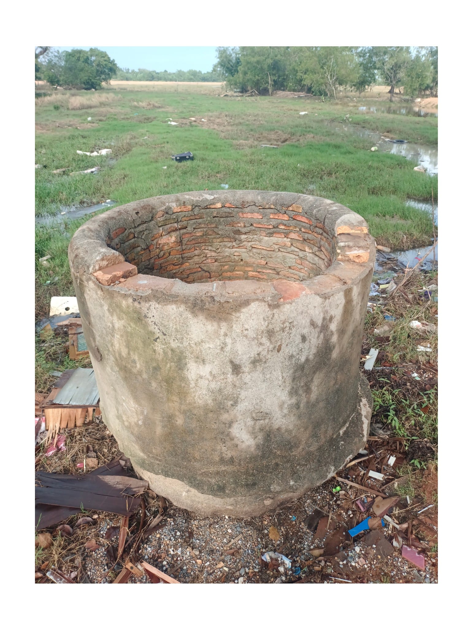 แต่เมื่อน้ำลด ร่องรอยทางประวัติศาสตร์ที่ถูกฝังไว้ใต้ผืนดินก็ได้ปรากฏให้เห็นอีกครั้ง นั่นคือ “ป่องบ่อน้ำ” หรือขอบบ่อน้ำที่ก่อด้วยอิฐสี่เหลี่ยมแบบเก่า (ซึ่งน่าจะเป็นอิฐมอญ?) ที่ยังคงโผล่เด่นอยู่ไม่ไกลจากตำแหน่งเดิม ร่องรอยแห่งนี้ไม่ใช่เพียงแค่ซากปรักหักพังของบ่อเก่า หากแต่เป็นหลักฐานทางประวัติศาสตร์ท้องถิ่นที่เชื่อมโยงกับความทรงจำของผู้คน โดยเฉพาะอย่างยิ่งกับผู้นำชุมชนในอดีต