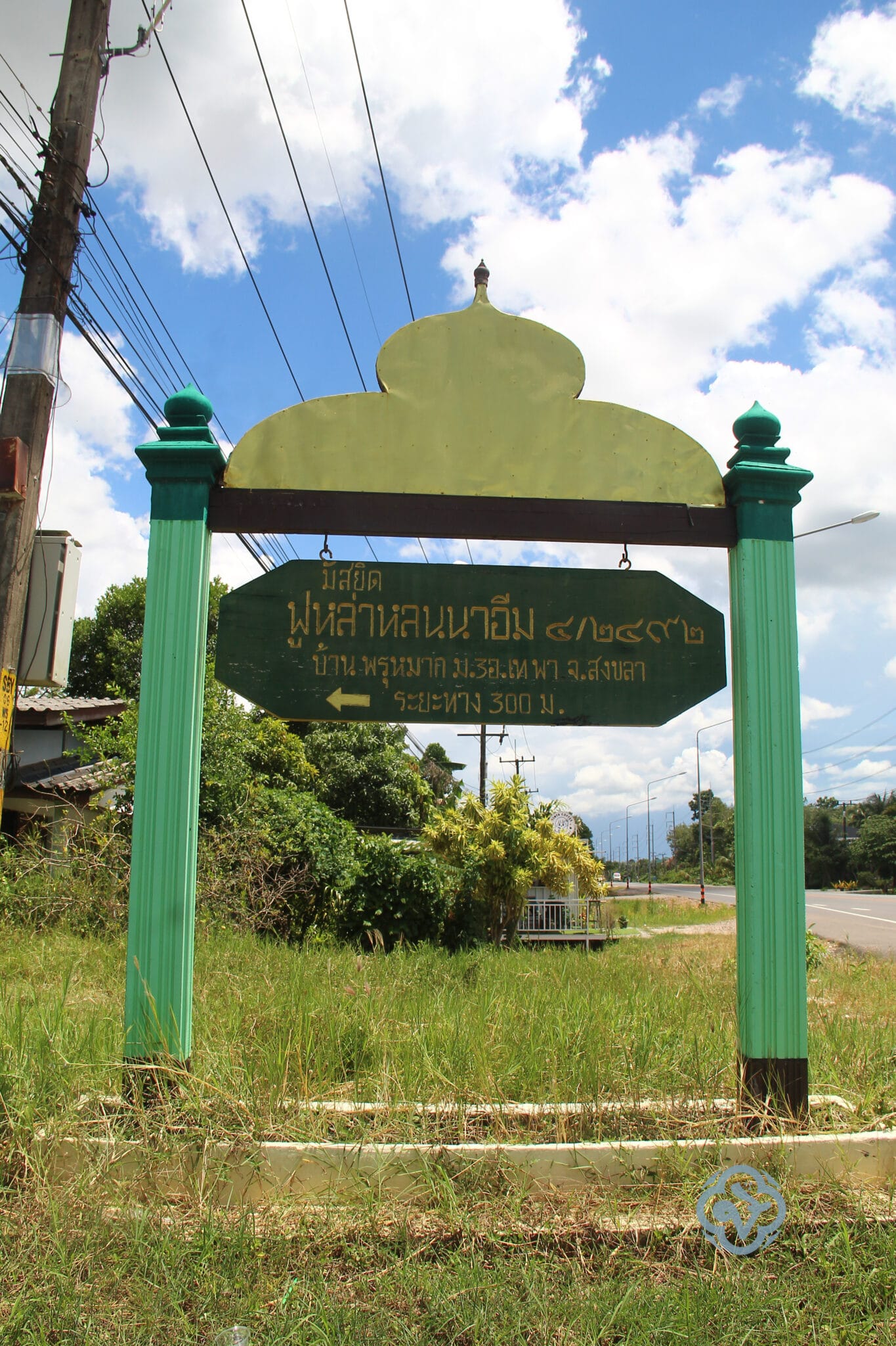 “…เมื่อประมาณปี พ.ศ. 2470 นายยีมะหลี หรนหลี ณ บริเวณมัสยิดปัจจุบันและได้มีผู้อาศัยอยู่บริเวณ มาร่วมละหมาดกับท่าน ณ ที่บ้าน ต่อมาท่านได้สร้างเป็นมัสยิด รูปแบบกั้นด้วยสังกะสี มุงหลังคาด้วยกระเบื้องอิฐดินเผา เทพื้นด้วยซีเมนต์ ต่อมาปี พ.ศ.2493 นายหะยีมุ มูณี ซึ่งเป็นหลานเขยของท่านได้ร่วมกับชาวบ้านและช่าง 4 ท่านคือ