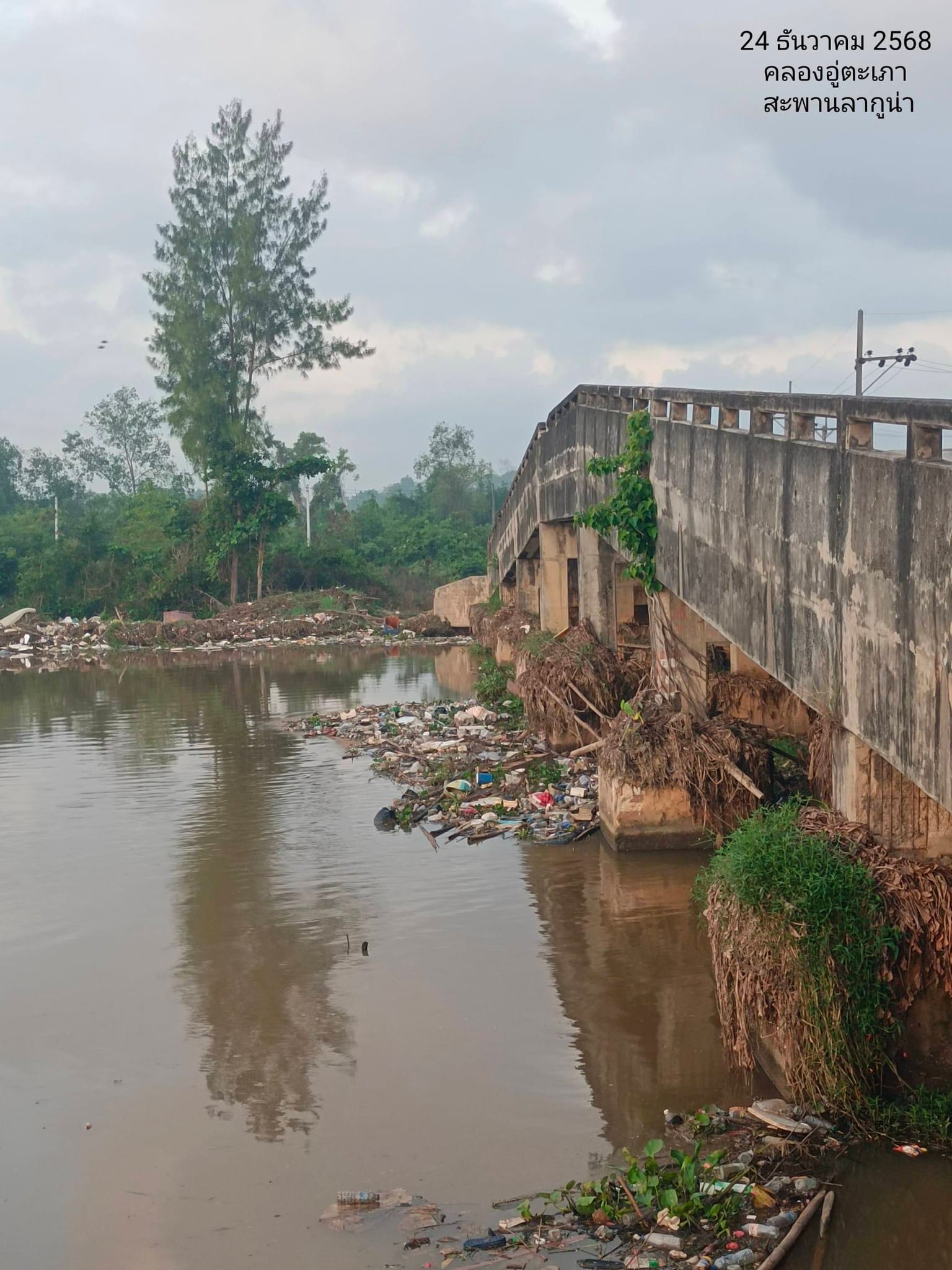 ขยะจำนวนมหาศาลจากเมืองหาดใหญ่ที่ไหลลงสู่คลองอู่ตะเภา กำลังกลายเป็นปัญหาใหญ่ที่รอการแก้ไขอย่างเร่งด่วน โดยปัจจุบันพบขยะปริมาณมากสะสมและติดค้างอยู่ที่ “สะพานสงขลาลากูน่า” (หมู่ 5 ต.บ้านควน อ.หาดใหญ่ จ.สงขลา)