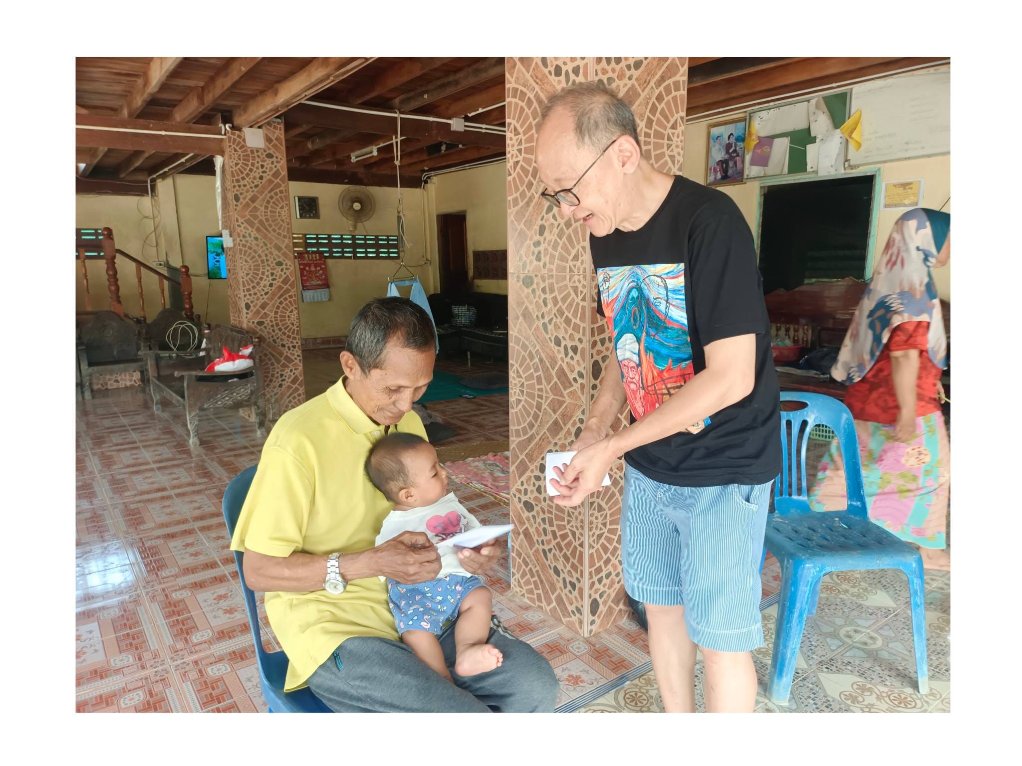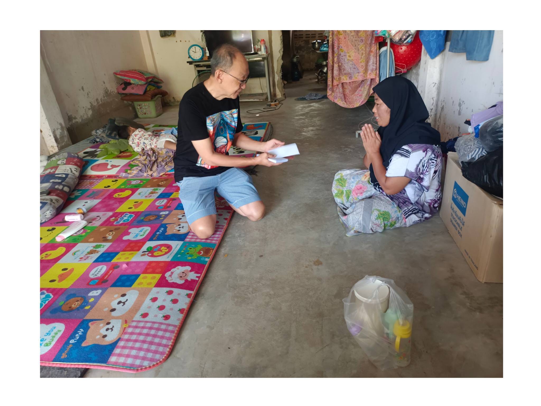 พี่วิรัตน์ได้กล่าวทิ้งท้ายไว้อย่างน่าประทับใจว่า “เด็กๆ ต้องมีชีวิตต่อ แม้อาจจะไม่มาก แต่เป็นเงินที่เพื่อนๆ จากทั่วประเทศฝากส่งต่อมาเพื่อช่วยเหลือคนที่ลำบากจริงๆ” ผมทำหน้าที่ประสานงานพาลงสำรวจพื้นที่จริง พี่ยา Yaya Plychum กับมะ ช่วยสำรวจ จดรายชื่อเด็กๆ และนำทางลงพื้นที่ตลอดทั้งวัน…