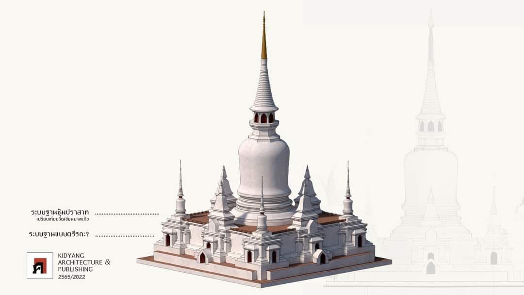 เจดีย์นี้ถ้าสมบูรณ์น่าจะอยู่ยังไง เมื่อพิจารณาจากระบบฐาน และกรณีศึกษาเปรียบเทียบที่เขาพิพัทธสิงห์ ระบบการทำซุ้มปราสาทแนบฐานที่วัดเขียนบางแก้ว รูปทรงสัดส่วนของเจดีย์เอวคอดแบบลุ่มทะเลสาบสงขลานับแต่พุทธศตวรรษที่ 22 ลงมาซึ่งยังเหลือให้เห็นอยู่ไม่น้อย ออกมาเป็นแบบสันนิษฐานอย่างไว ๆ นี้
