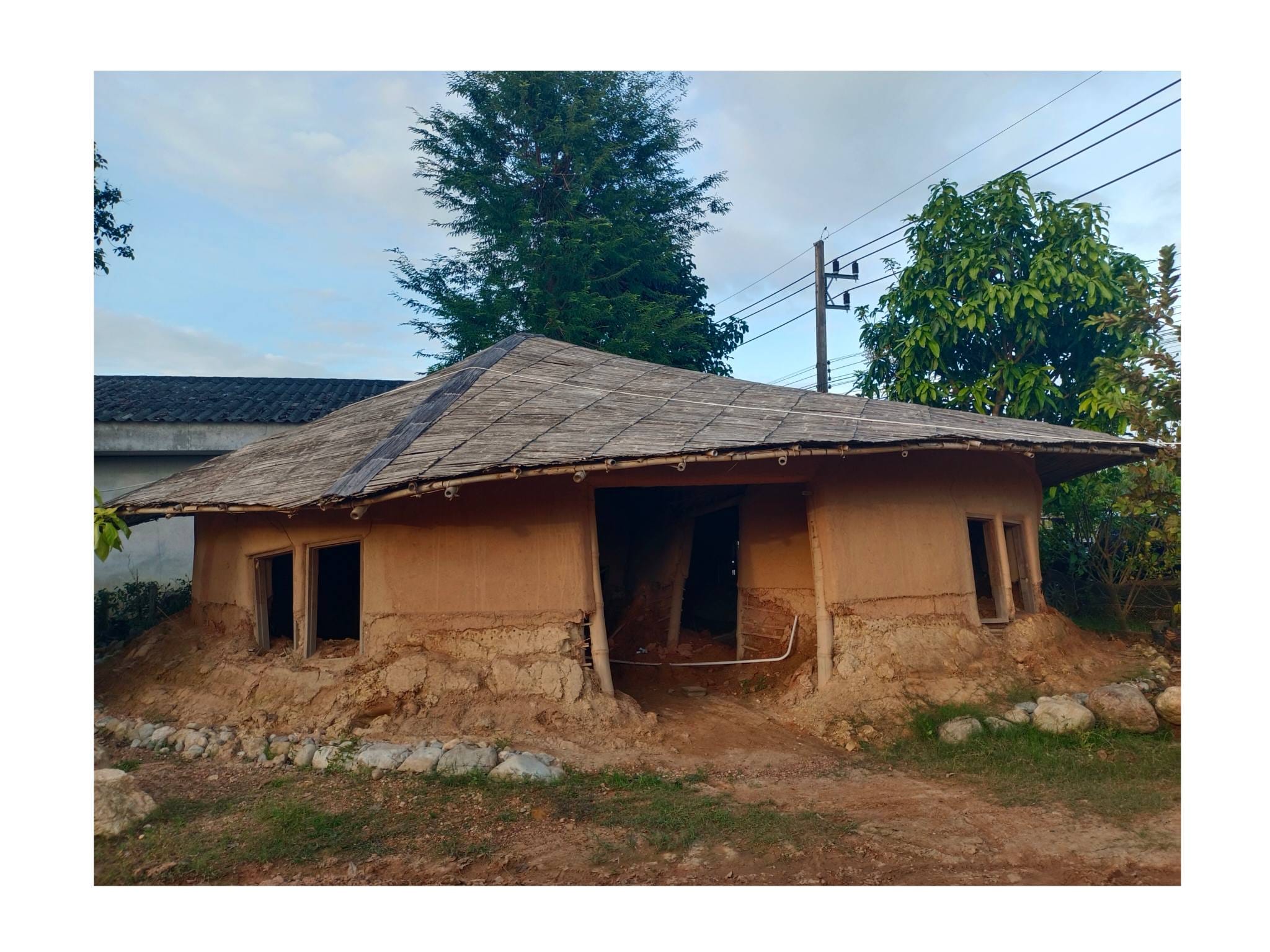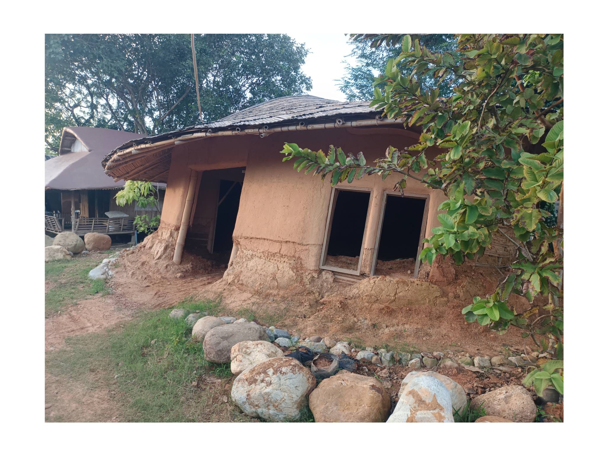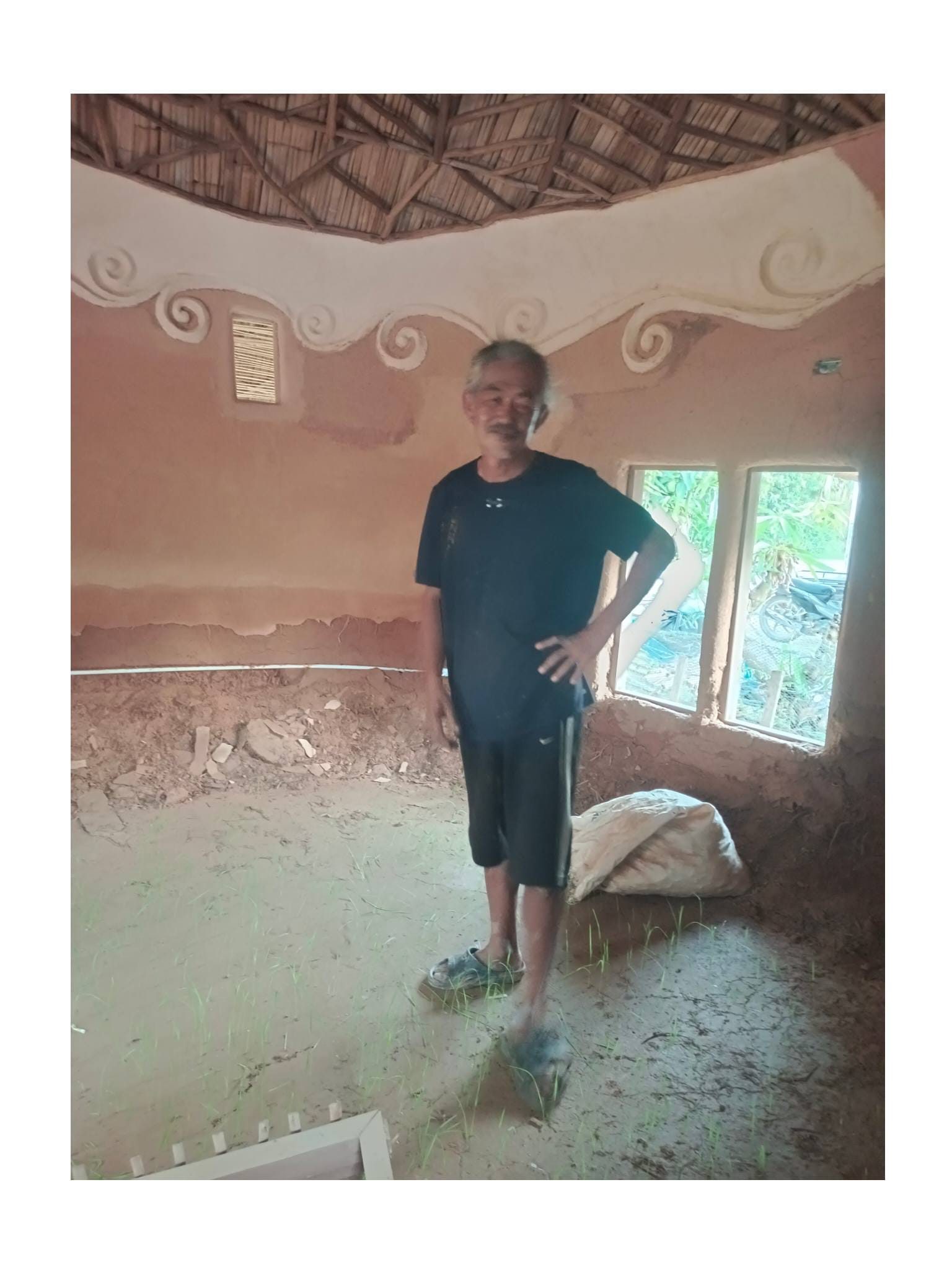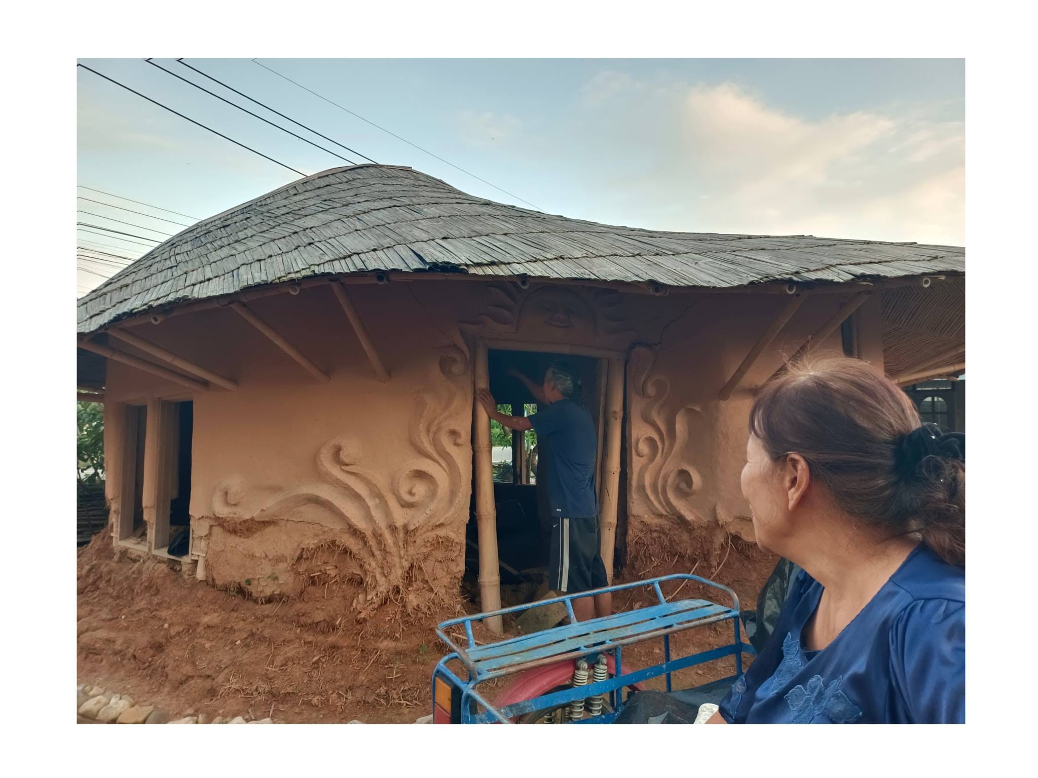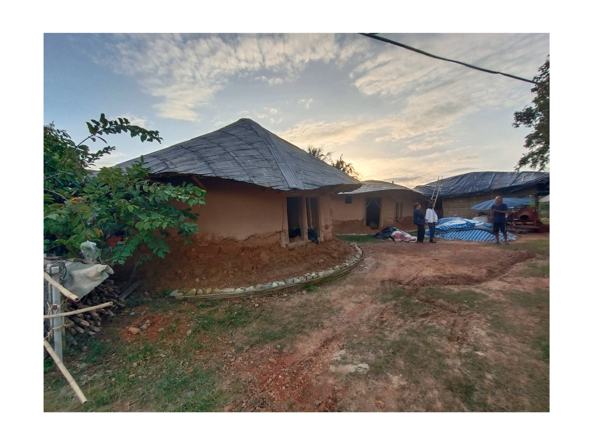 ด้วยความรู้ความเชี่ยวชาญด้านศิลปะและการทำบ้านดินของอาจารย์เก่ง ตลอด 2 ปีที่ผ่านมา ทั้งคู่จึงได้ทุ่มเทแรงกายและแรงทุนสร้างกลุ่มอาคารบ้านดินขึ้นมา โดยหวังจะให้ที่แห่งนี้เป็นมากกว่าที่อยู่อาศัย แต่เป็นทั้ง โฮมสเตย์ และ ศูนย์การเรียนรู้ เพื่อแบ่งปันวิชาบ้านดินและงานศิลปะให้แก่ผู้ที่สนใจ…”สร้างมาเกือบ 2 ปี เป็นงานแฮนด์เมดทั้งหมด มีค่าแรงช่างสะสมมาล้านกว่าบาท ทั้งหมด 3-4 หลัง ตอนนี้มึนไปหมด คิดอะไรไม่ออกเลย” ป้ากบถ่ายทอดความรู้สึกท่ามกลางซากปรักหักพังของอาคารที่ครั้งหนึ่งเคยเป็นรูปธรรมของความฝัน…