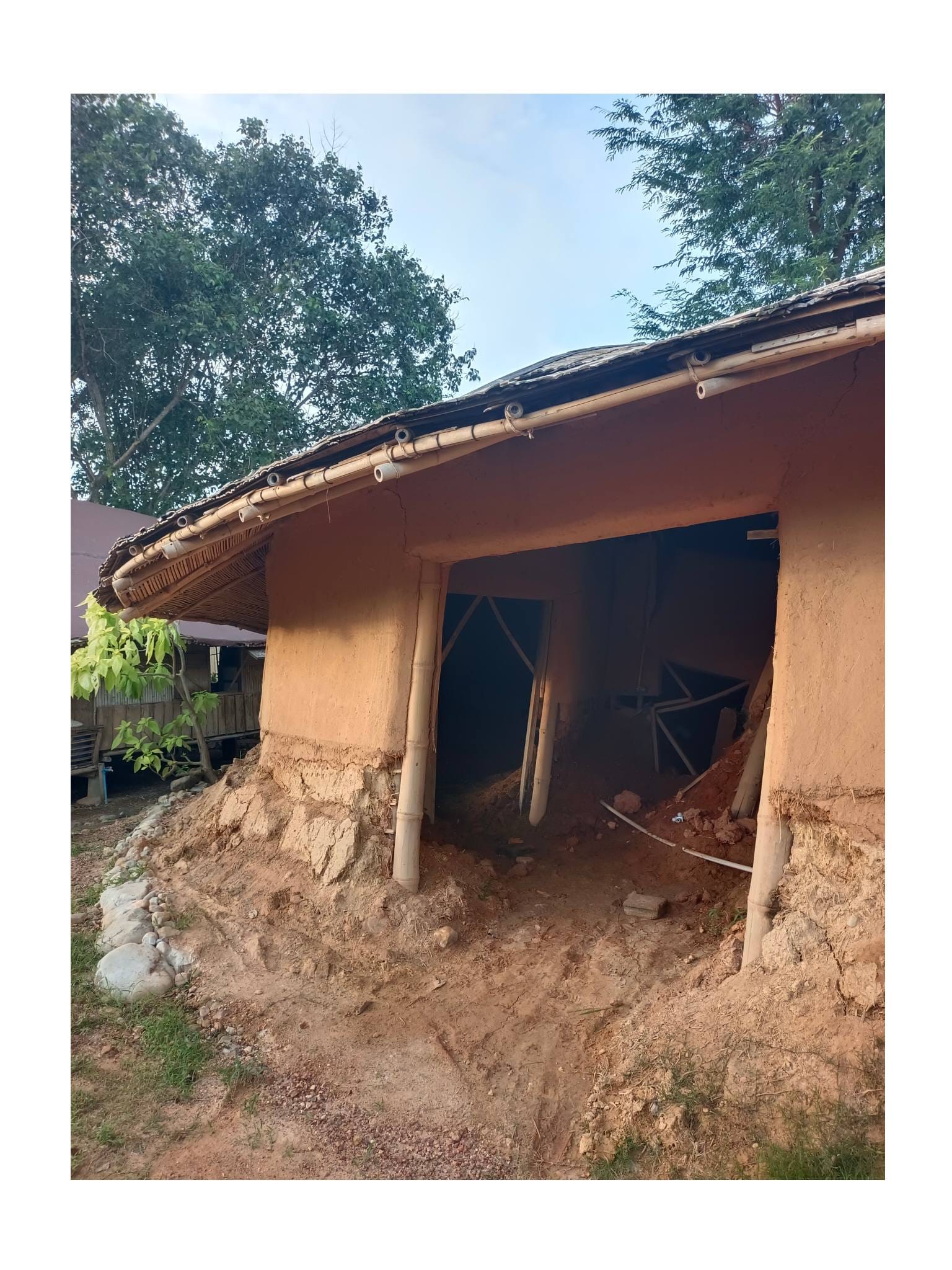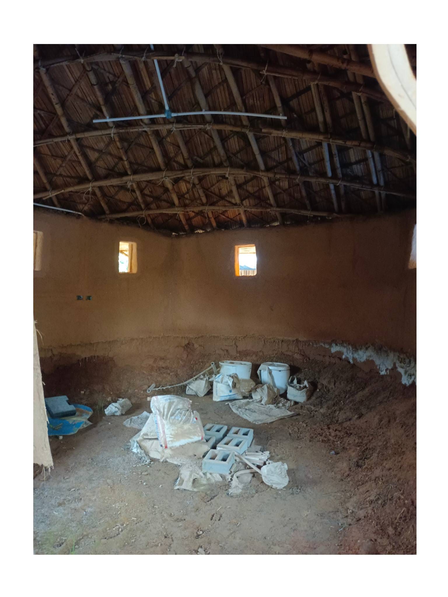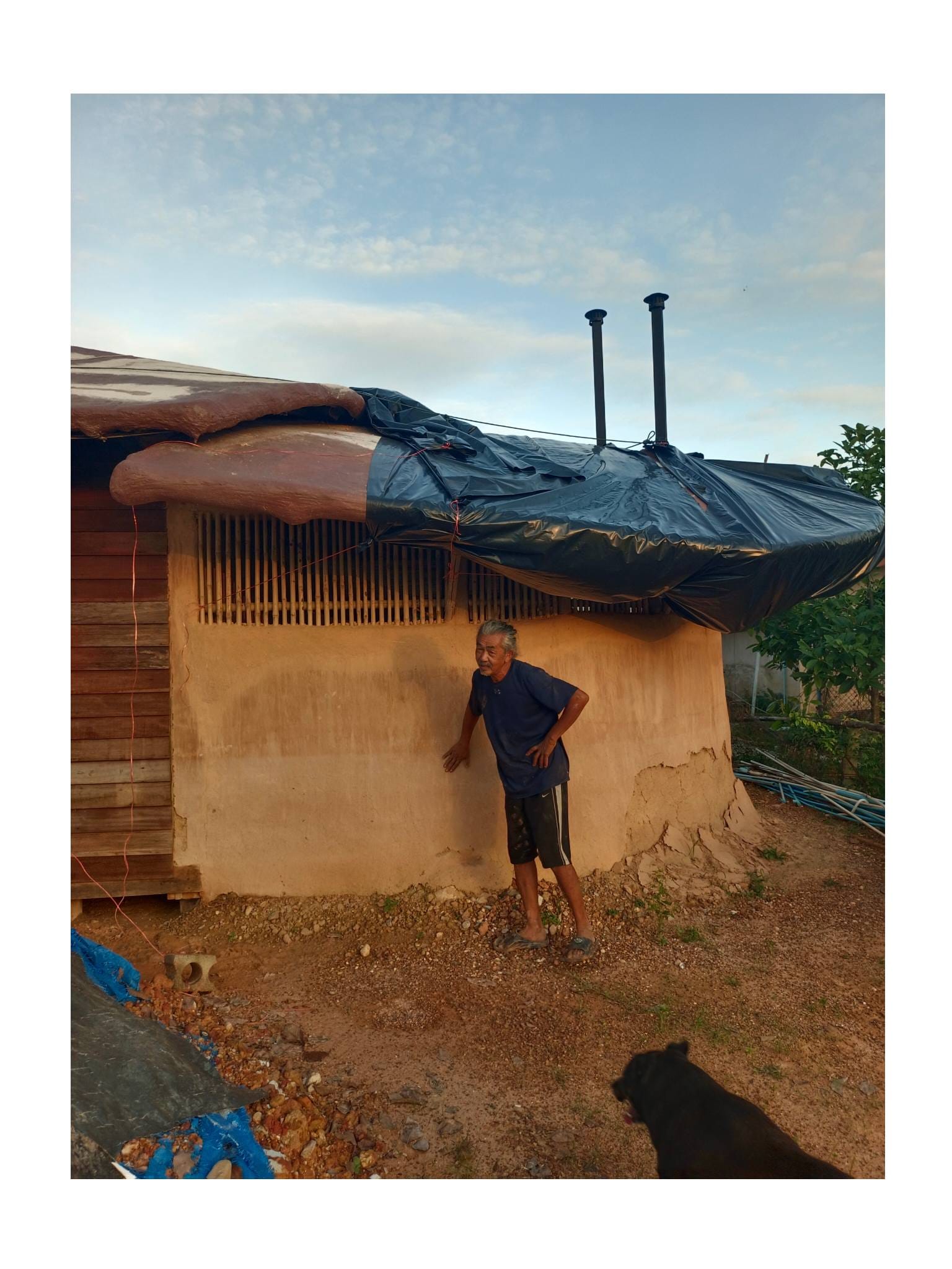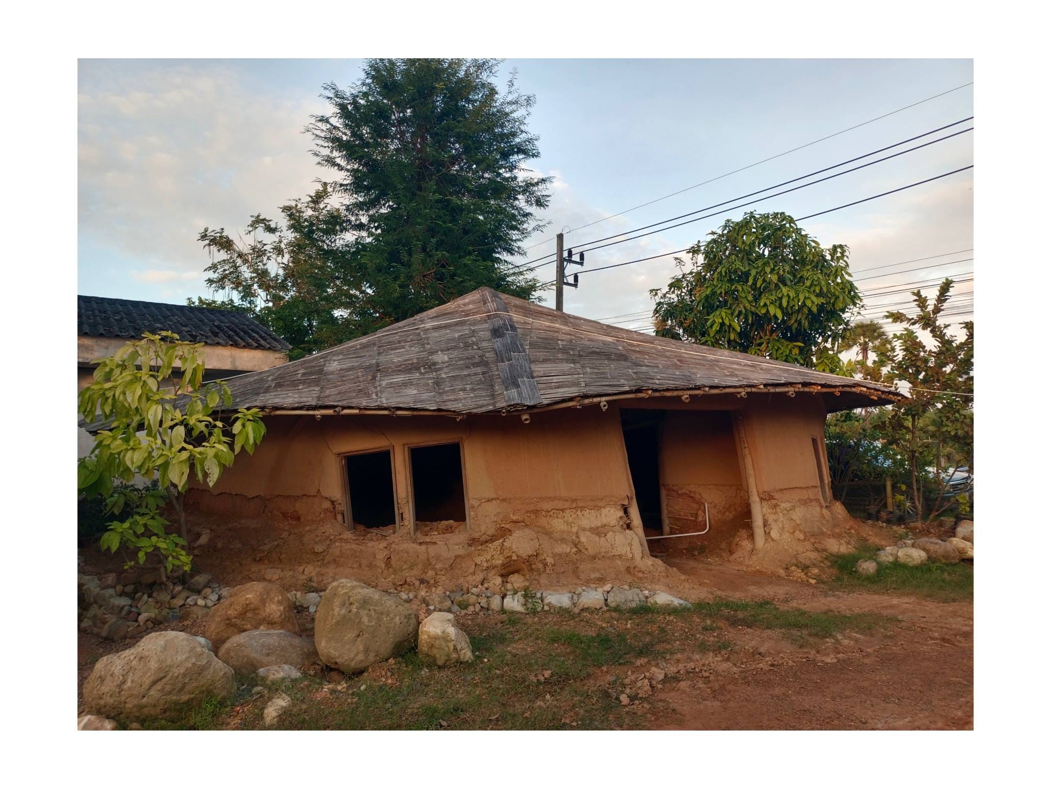 ด้วยความรู้ความเชี่ยวชาญด้านศิลปะและการทำบ้านดินของอาจารย์เก่ง ตลอด 2 ปีที่ผ่านมา ทั้งคู่จึงได้ทุ่มเทแรงกายและแรงทุนสร้างกลุ่มอาคารบ้านดินขึ้นมา โดยหวังจะให้ที่แห่งนี้เป็นมากกว่าที่อยู่อาศัย แต่เป็นทั้ง โฮมสเตย์ และ ศูนย์การเรียนรู้ เพื่อแบ่งปันวิชาบ้านดินและงานศิลปะให้แก่ผู้ที่สนใจ…”สร้างมาเกือบ 2 ปี เป็นงานแฮนด์เมดทั้งหมด มีค่าแรงช่างสะสมมาล้านกว่าบาท ทั้งหมด 3-4 หลัง ตอนนี้มึนไปหมด คิดอะไรไม่ออกเลย” ป้ากบถ่ายทอดความรู้สึกท่ามกลางซากปรักหักพังของอาคารที่ครั้งหนึ่งเคยเป็นรูปธรรมของความฝัน…