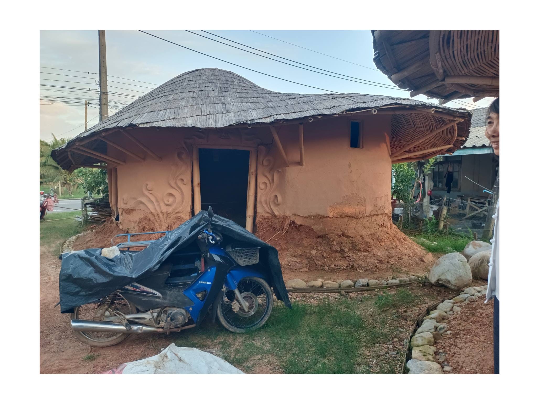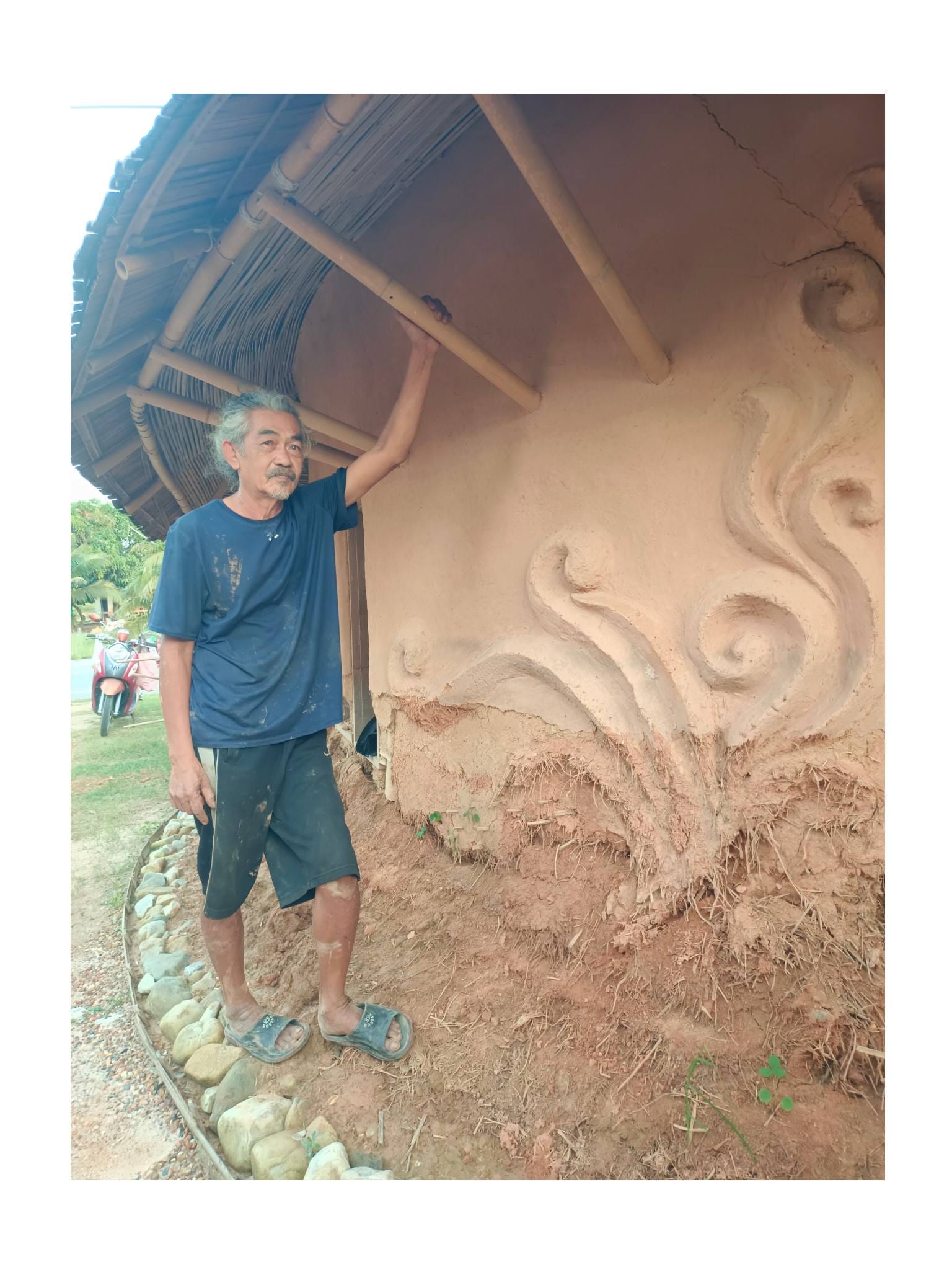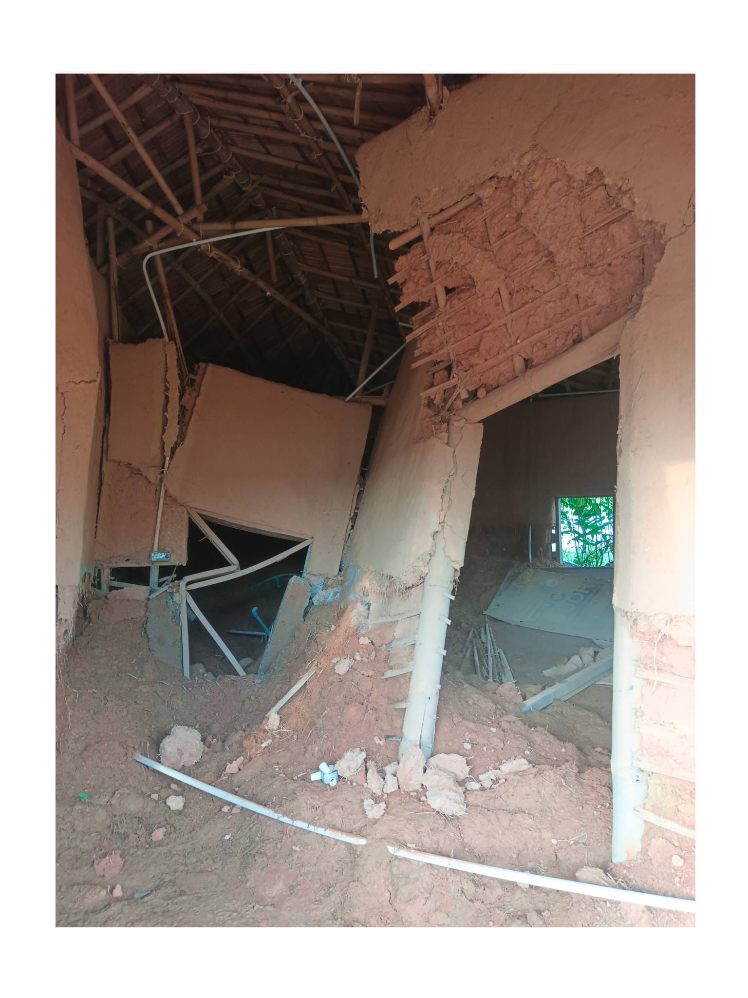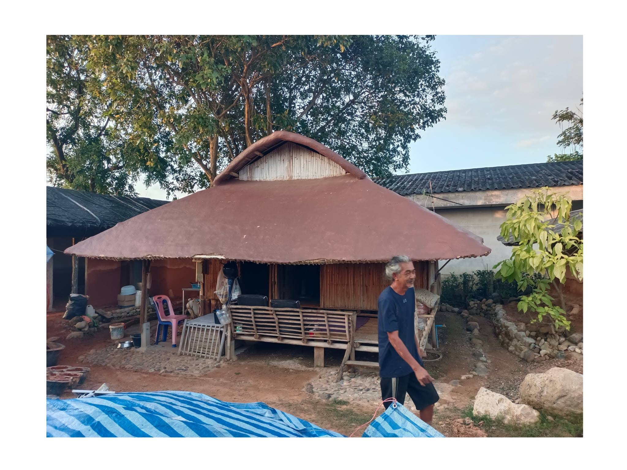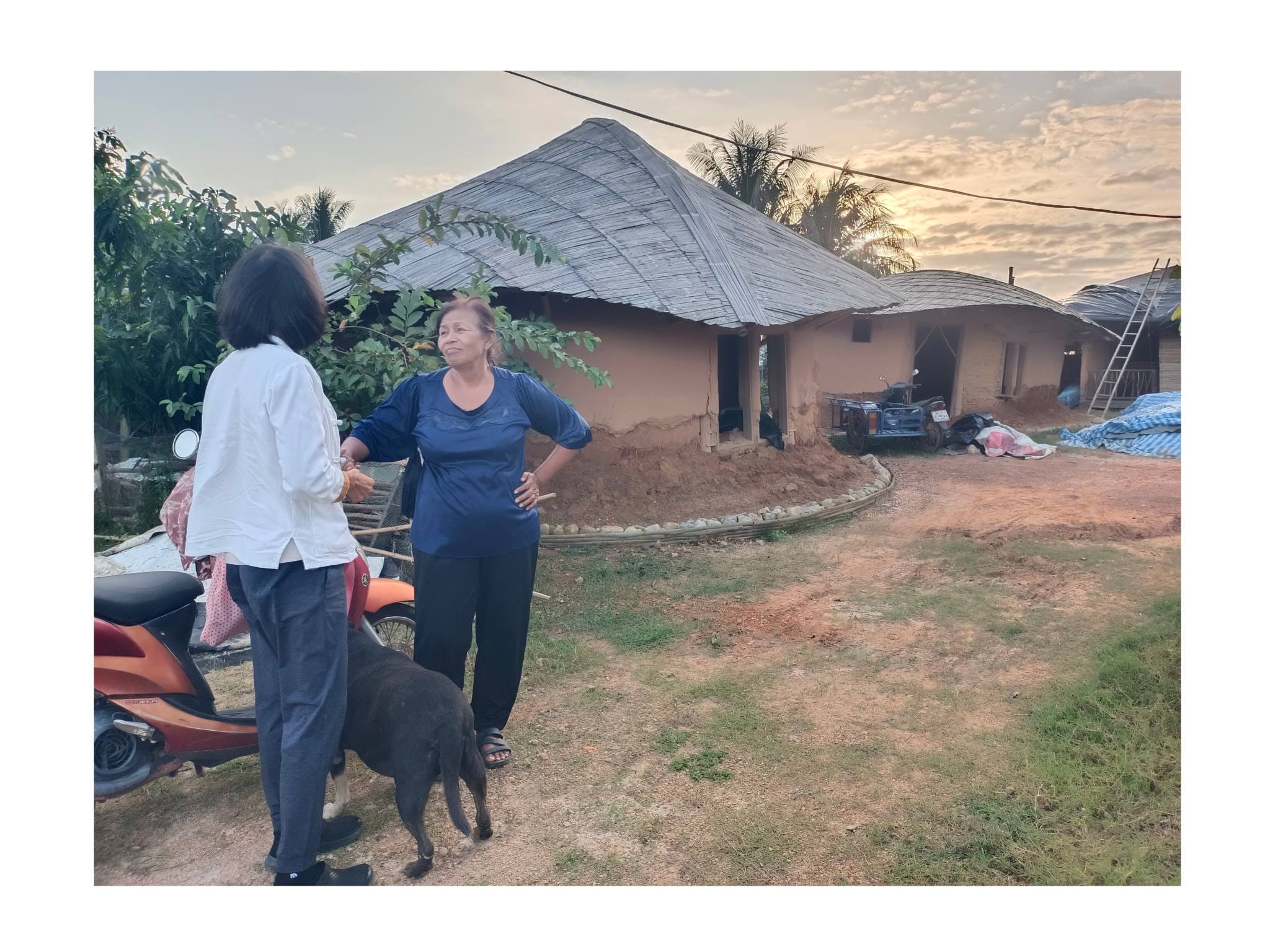 ด้วยความรู้ความเชี่ยวชาญด้านศิลปะและการทำบ้านดินของอาจารย์เก่ง ตลอด 2 ปีที่ผ่านมา ทั้งคู่จึงได้ทุ่มเทแรงกายและแรงทุนสร้างกลุ่มอาคารบ้านดินขึ้นมา โดยหวังจะให้ที่แห่งนี้เป็นมากกว่าที่อยู่อาศัย แต่เป็นทั้ง โฮมสเตย์ และ ศูนย์การเรียนรู้ เพื่อแบ่งปันวิชาบ้านดินและงานศิลปะให้แก่ผู้ที่สนใจ…”สร้างมาเกือบ 2 ปี เป็นงานแฮนด์เมดทั้งหมด มีค่าแรงช่างสะสมมาล้านกว่าบาท ทั้งหมด 3-4 หลัง ตอนนี้มึนไปหมด คิดอะไรไม่ออกเลย” ป้ากบถ่ายทอดความรู้สึกท่ามกลางซากปรักหักพังของอาคารที่ครั้งหนึ่งเคยเป็นรูปธรรมของความฝัน…