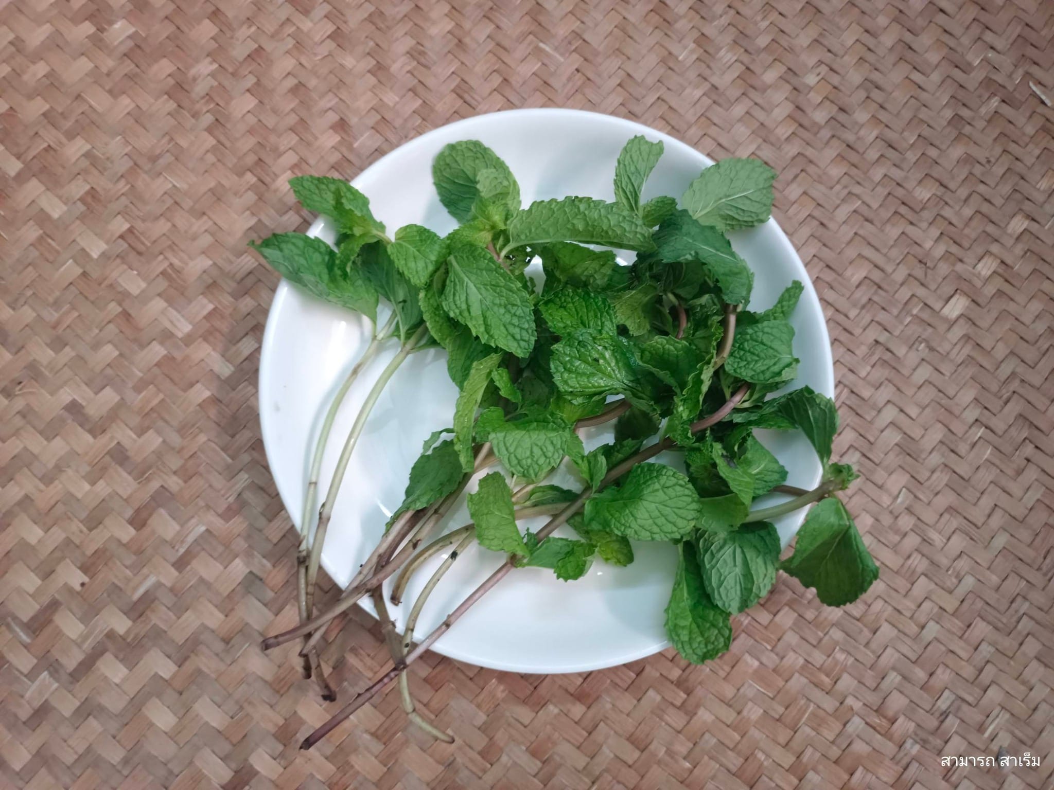 ใบมะเงาะ คำเรียก ใบสะระแหน่ ของคนมุสลิมบ้านบ่อตรุ ตำบลบ่อตรุ อำเภอระโนด จังหวัดสงขลา