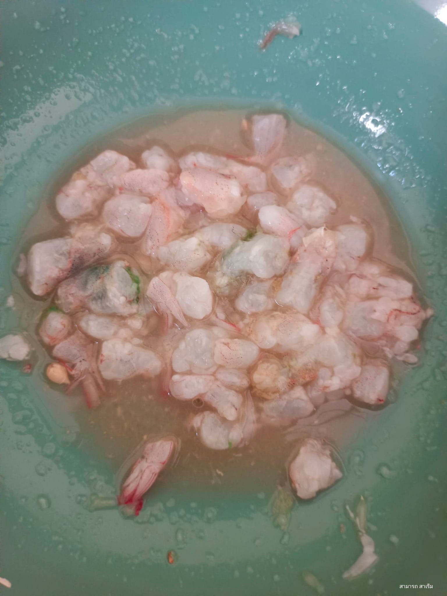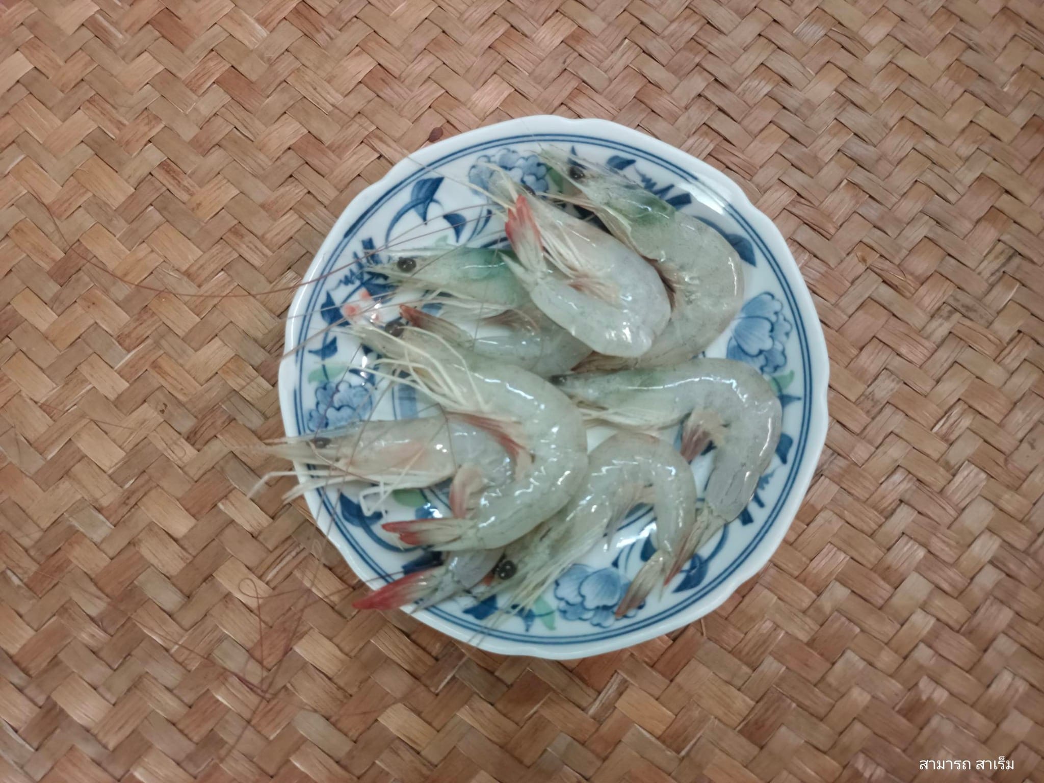 1. การเตรียมเนื้อ ล้างกุ้งสดให้สะอาด ปอกเปลือก แล้วหั่นเป็นชิ้นเล็กๆ