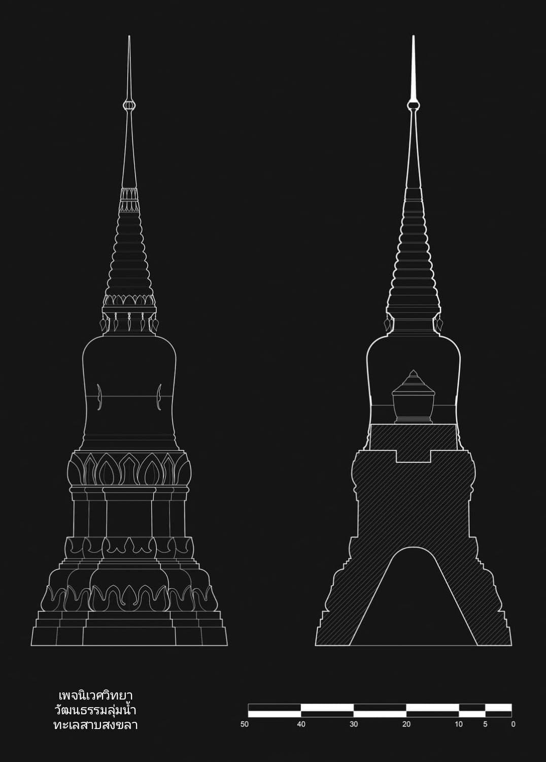 เจดีย์ก่ออิฐบนฐานหิน ที่ลานชั้นล่างของวัดสูงเกาะใหญ่ถูกฟ้าผ่าติดต่อกัน ๓ ครั้ง เหตุการณ์นี้เกิดขึ้นเมื่อไม่ถึงร้อยปีก่อน หลังฟ้าฝ่าเจดีย์ทะลายลงบางส่วนทำให้พบโกศซึ่งทำเป็นรูปเจดีย์สูงประมาณ ๑.๒๕ เมตร โกศนี้สามารถเปิดออกได้ ภายในโกศมีผอบเงินบรรจุอัฐิบุคคลนิรนามวางซ้อนอยู่อีกชั้นหนึ่ง จากตำนาน และความรับรู้ที่เล่าสืบต่อกันมาว่าเจดีย์องค์นี้คือเจดีย์ที่ประดิษฐานอัฐิของสมเด็จเจ้าเกาะใหญ่ ดังนั้นโกศและอัฐิในโกศที่พบนี้จึงน่าจะเป็นของสมเด็จเจ้าเกาะใหญ่ พระเถระในตำนานของชาวเกาะใหญ่-กระแสสินธุ์ ซึ่งมีชีวิตอยู่ในราวครึ่งหลังของพุทธศตวรรษที่ ๒๒ – ต้นพุทธศตวรรษที่ ๒๓ (๒๑๕๐ – ๒๒๒๕) ข้อสันนิษฐานนี้เป็นที่รับรู้เชื่อถือของชาวเกาะใหญ่-กระแสสินธุ์อย่างกว้างขวาง