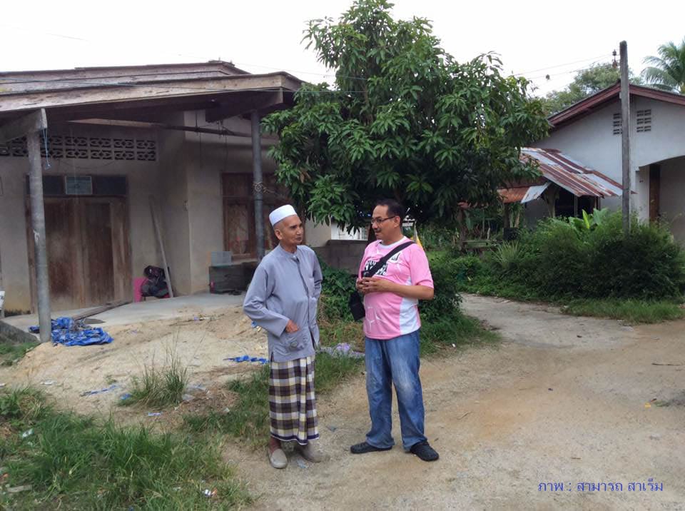 อาจารย์ศุกรีย์ สะเร็ม ถ่ายภาพกับปะแก่ (คุณตา)ที่บ้านทายขาว ในวันที่ลงไปสำรวจข้อมูลภาคสนามกับผู้เขียน